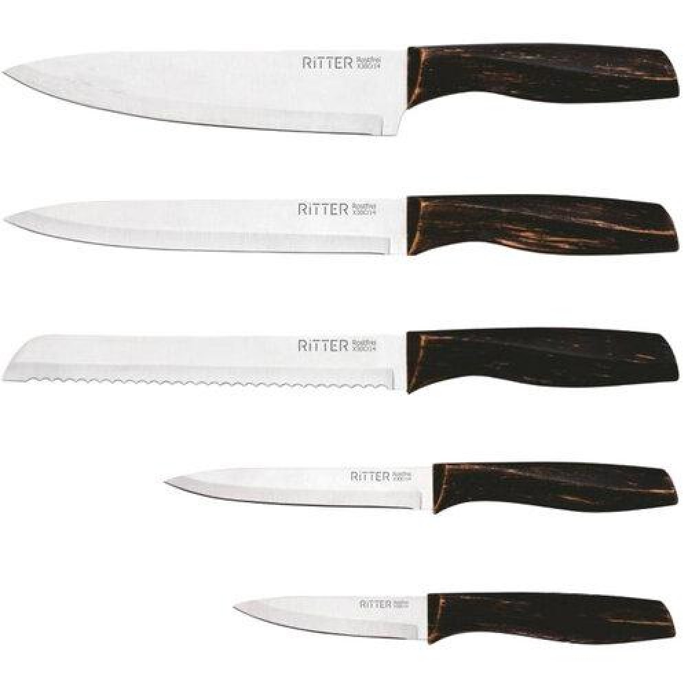 - Практичний набір з п’яти різноманітних ножів на підставці – ваш незамінний помічник на кухні.