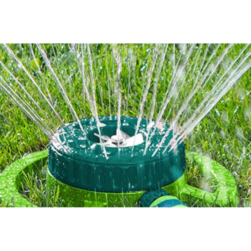 Поливальник з 9 функціями забезпечує зручний полив поверхні до 95 м2. Продукт виготовлений з високоякісного пластику, а металева поливальна система гарантує тривале використання продукту.