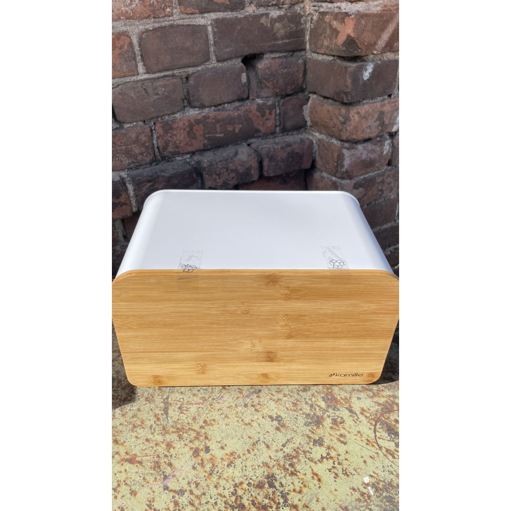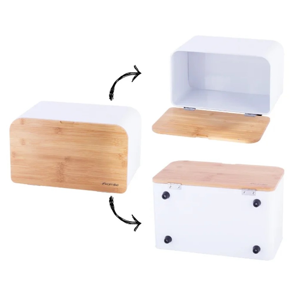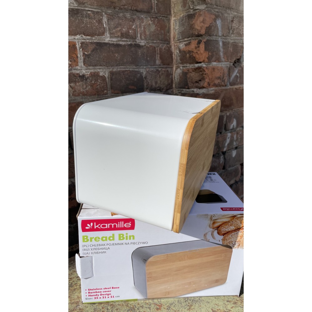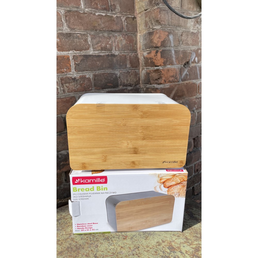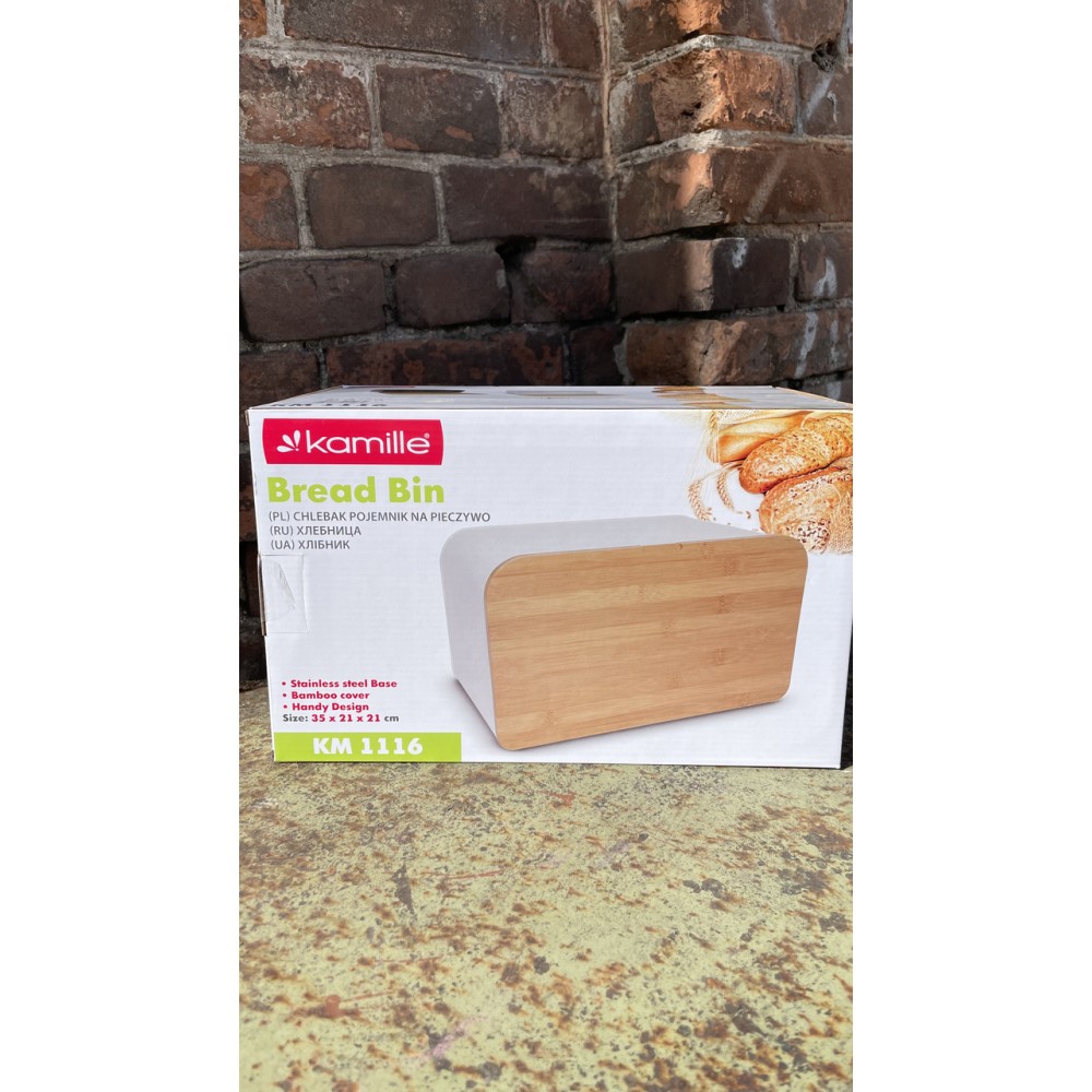 Хлібниця Kamille з нержавіючої сталі з дерев'яною відкидною кришкою KM-1116