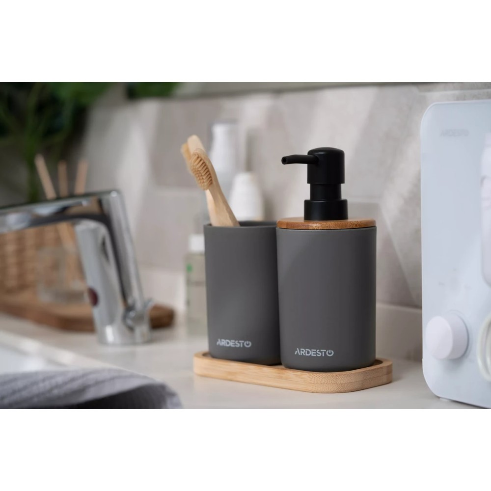 Набір для ванної кімнати Ardesto Minimalism 360мл, 3 предмета, поліпропілен, бамбук, темно-сірий ARHB3110GB