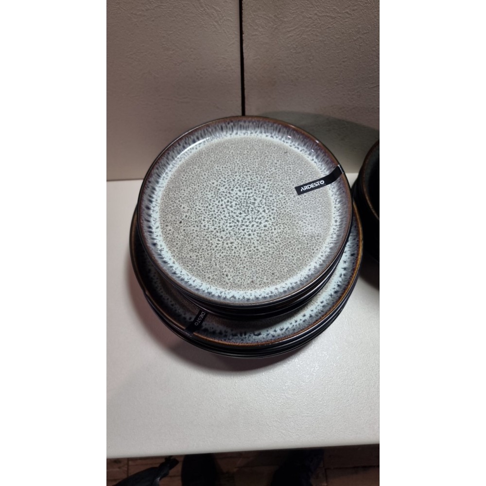Набір повністю виготовлений з надміцної кам'яної кераміки, яка є 100% екологічно чистим матеріалом. Квадратні та круглі тарілки стильно поєднуються, мають гладку поверхню і не вбирають сторонні запахи.