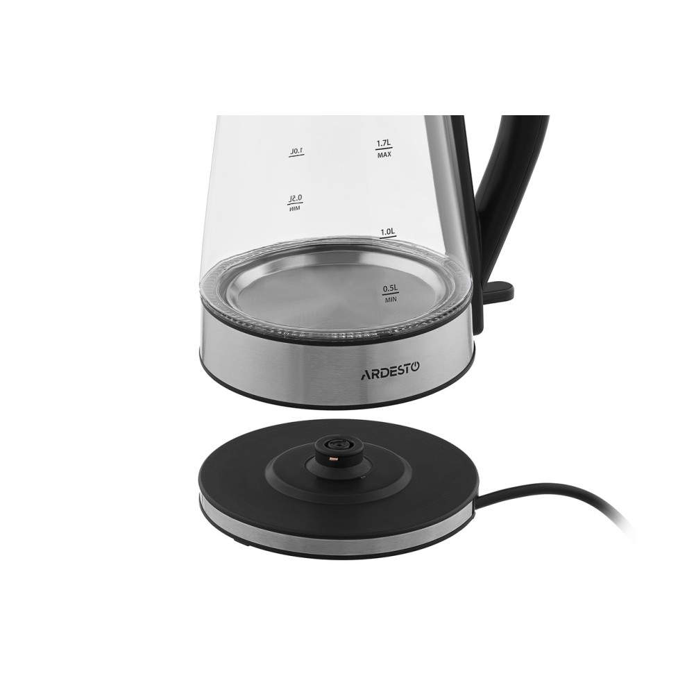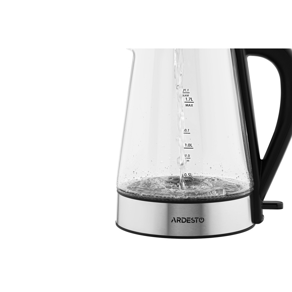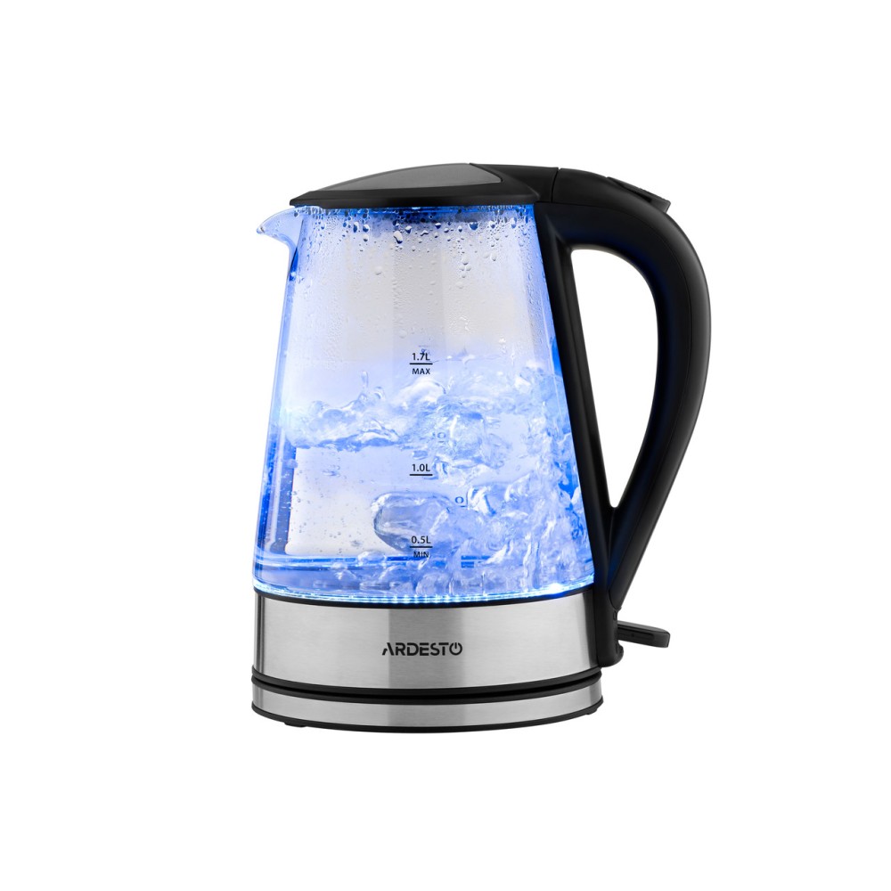 Прозорий скляний електричний чайник Ardesto з LED-підсвіткою та контролером Strix для захисту від перегріву.