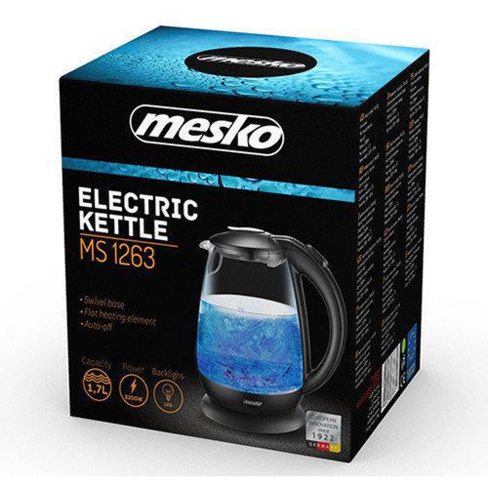 Основним параметром пристрою є практична колба з високоміцного скла, стійка до температурних впливів. Mesko 1263 оснащений яскравим світловим індикатором рівня води та має функцію автоматичного вимкнення, що дозволяє значно економити електроенергію та підвищує безпеку використання.