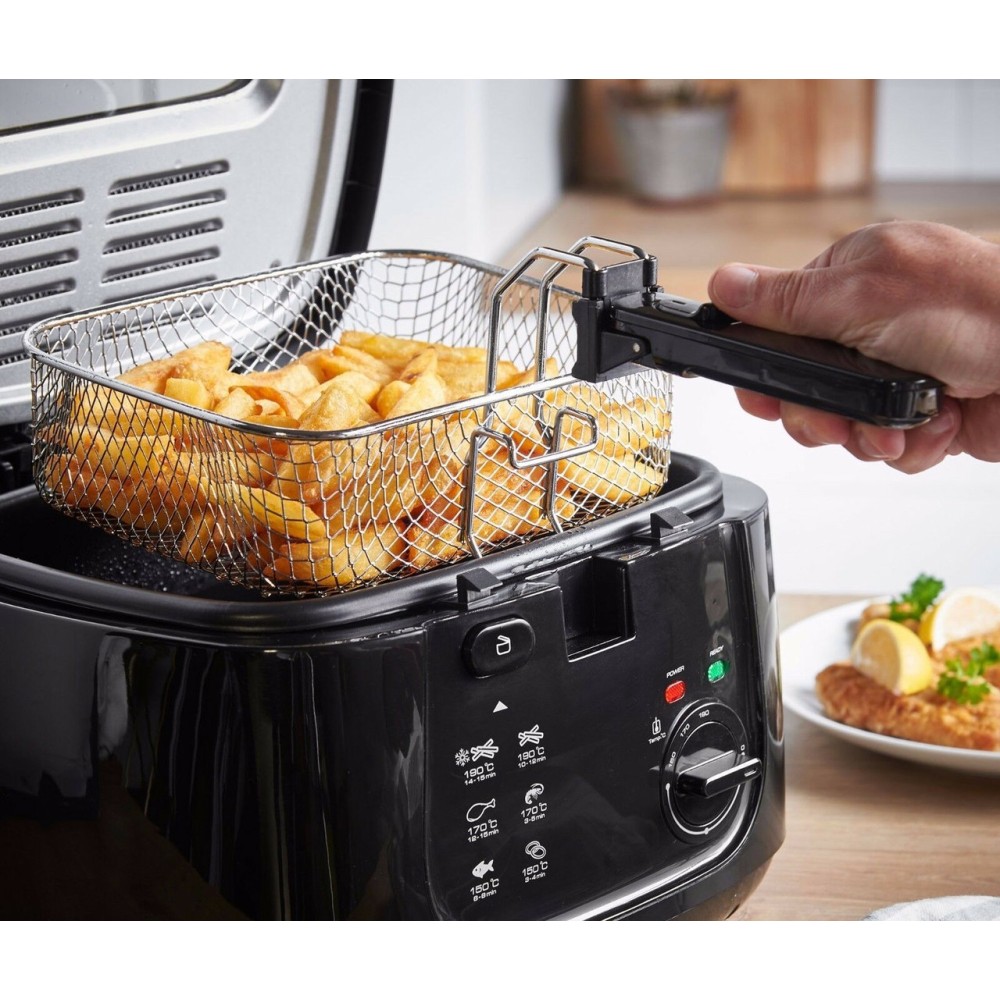 Пристрій оснащене фільтром проти запаху, що усуває небажані аромати. Регульований термостат і контрольні лампи забезпечують зручність у використанні. З великою потужністю 1800 Вт, фритюрниця швидко нагрівається, а прозора кришка дозволяє стежити за процесом приготування.