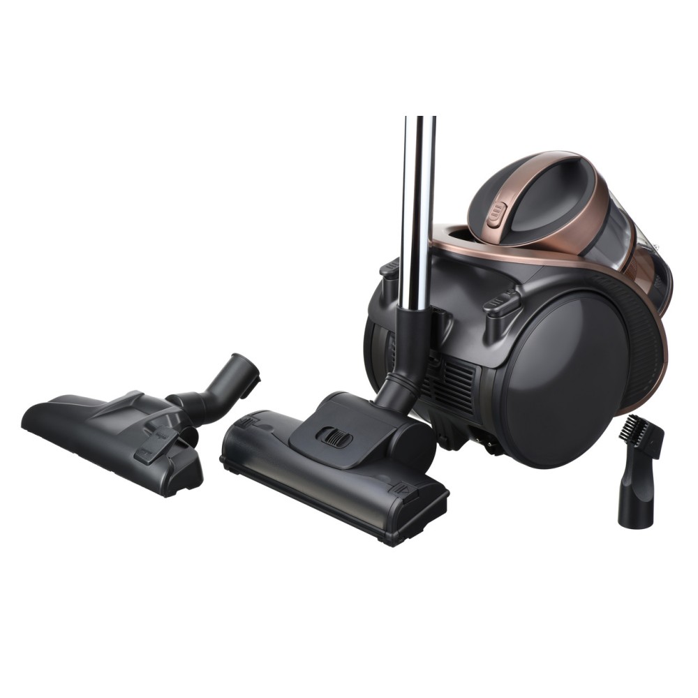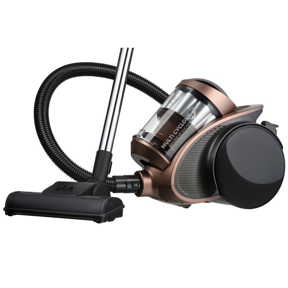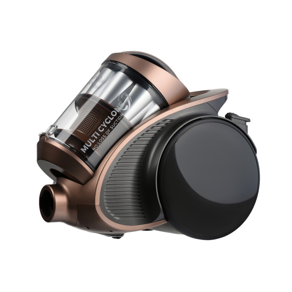Система мультициклон ефективно всмоктує пил всередину контейнера, який легко очистити після прибирання. Індикатор заповненості контейнера сповістить вас, коли потрібно буде його почистити. Пилосос оснащений губчастим витяжним фільтром і металевою телескопічною трубкою.