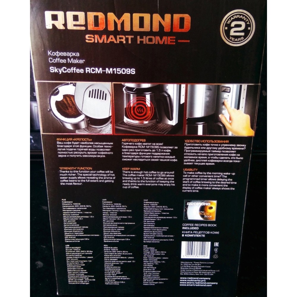 REDMOND SkyCoffee RCM-М1519S – розумна кавоварка, за допомогою якої ви приготуєте каву або чай зі смартфона, перебуваючи в будь-якій точці планети. Об'єм глечика 1,5 л дозволить вам зварити ароматний гарячий напій для великої родини або компанії друзів.
