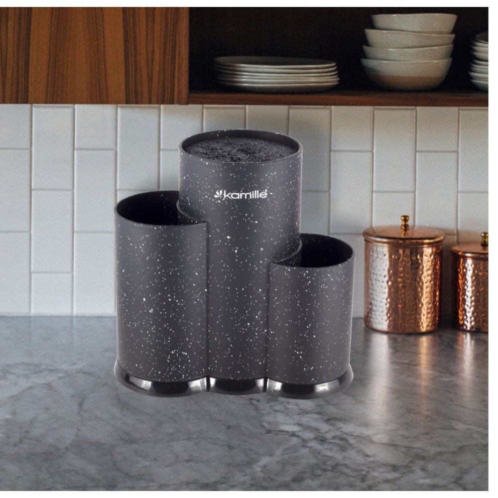 Чорна підставка для ножів та кухонних приладдя Kamille 22 см KM 7608