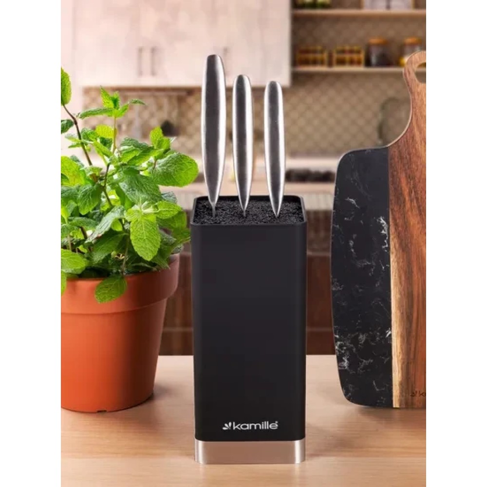 Універсальна блок-підставка для ножів з наповнювачем Kamille дозволяє дбайливо зберігати кухонні ножі та ножиці в одному місці, щоб вони завжди були під рукою.