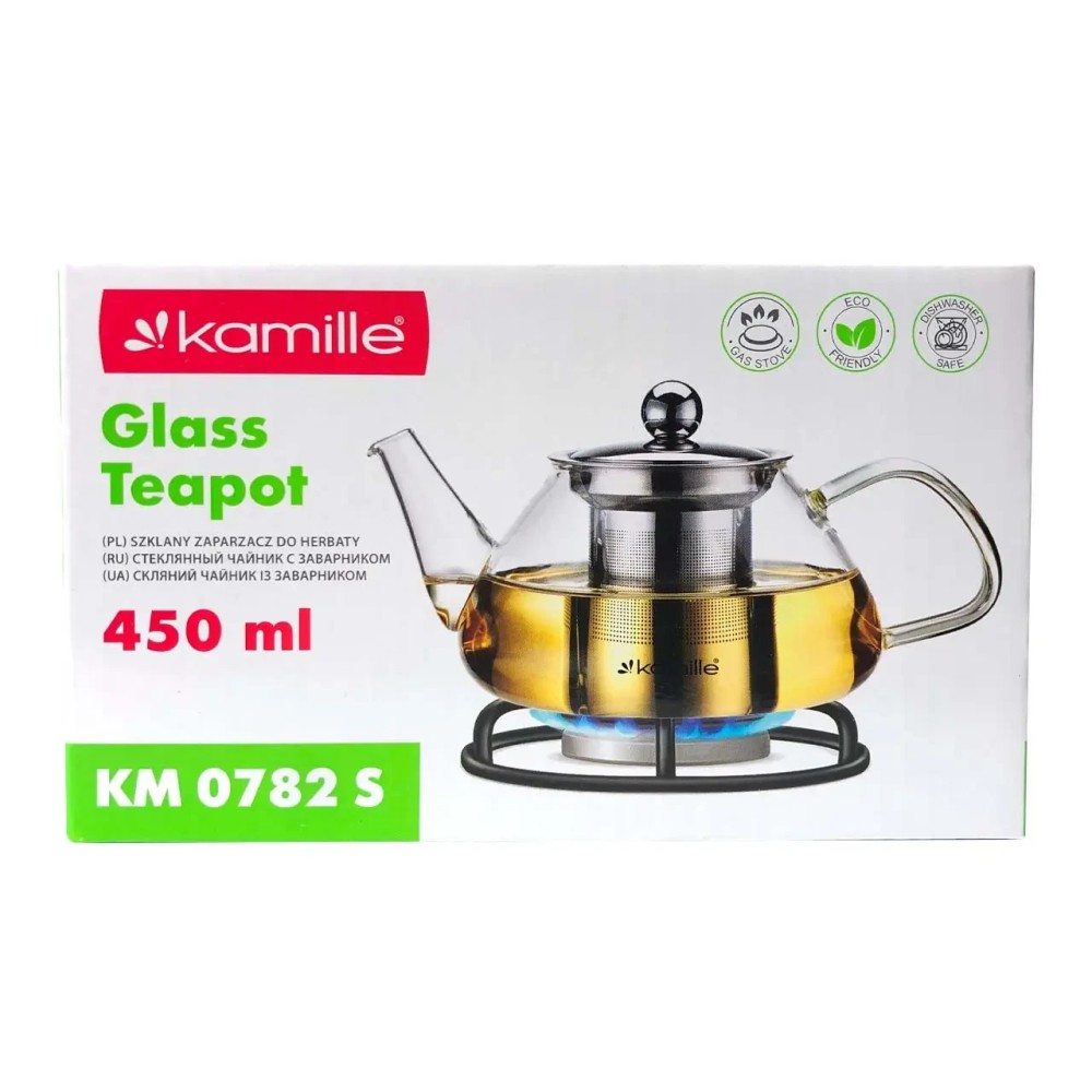 Чайник скляний вогнетривкий МОЖНА НА ГАЗ Kamille 450 мл зі знімним ситечком KM-0782 S