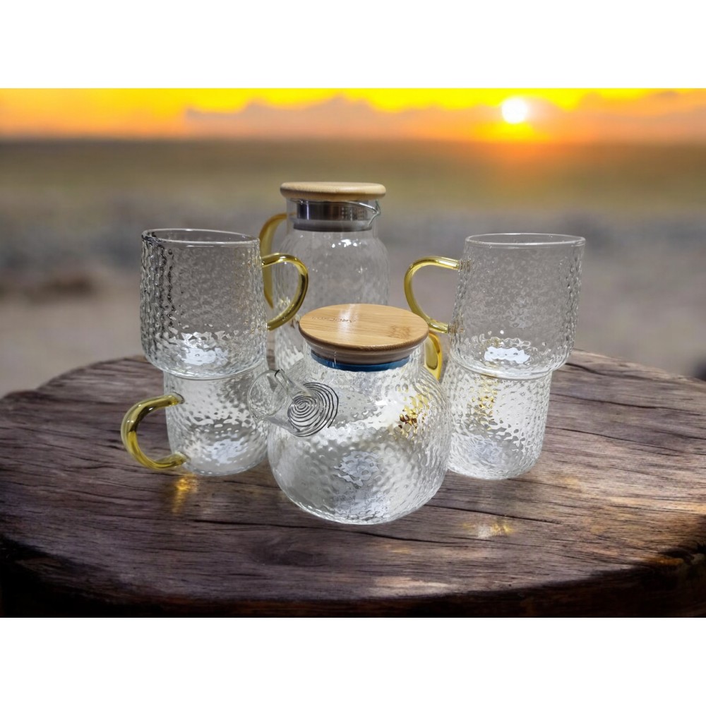 Чашки та заварник виготовлені з термостійкого боросилікатного скла. Підходить для використання в посудомийній машині.