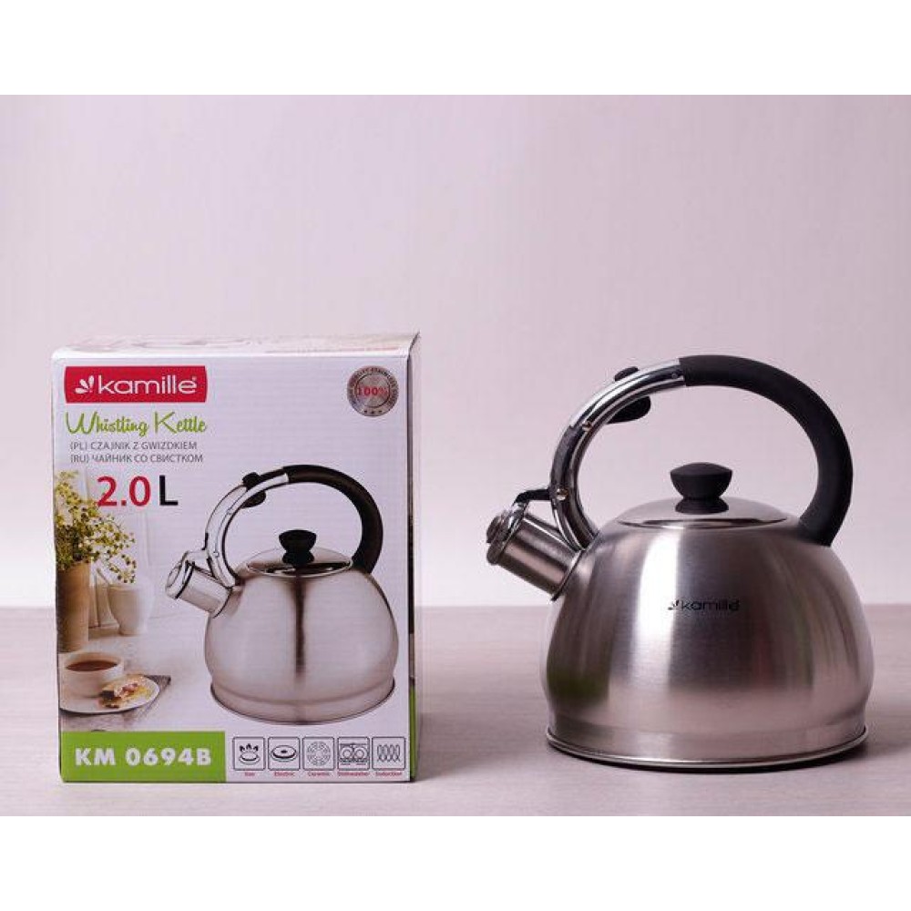 Чайник 2 літри Kamille з нержавної сталі з свистком 0694BN