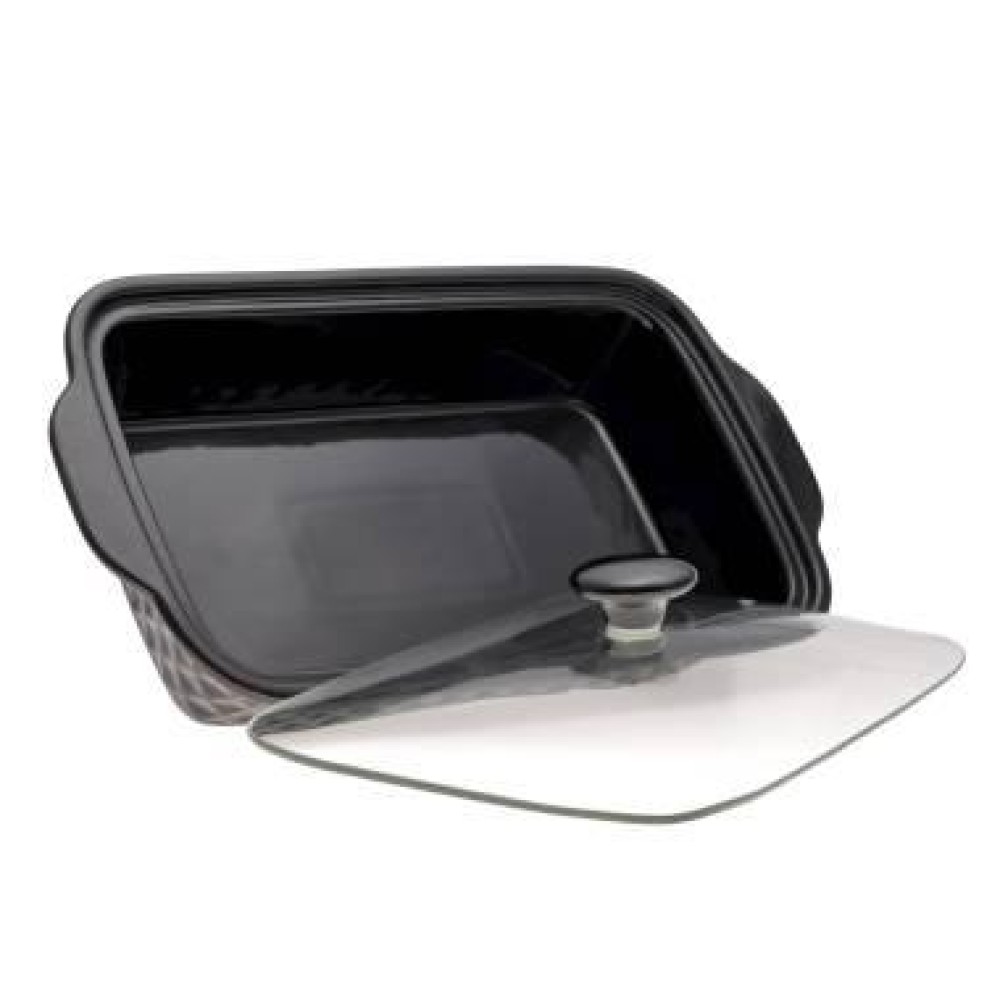Скляна форма підходить для використання в духових і мікрохвильових печах. У комплекті з нею йде: