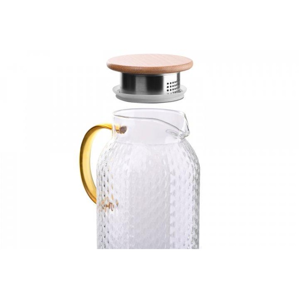 Глечик виготовлений з боросилікатного скла та оснащений кришкою з бамбука і нержавіючої сталі.