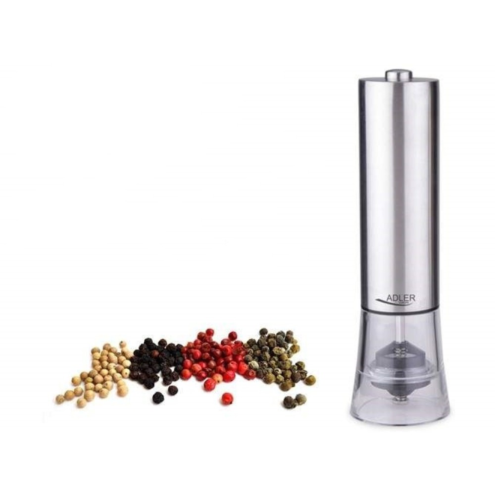 Подрібнювач для спецій Adler AD 4433 — зручний пристрій для приправлення страв свіжомеленим перцем. Мельниця виготовлена з нержавіючої сталі з високоякісними керамічними жорнами.