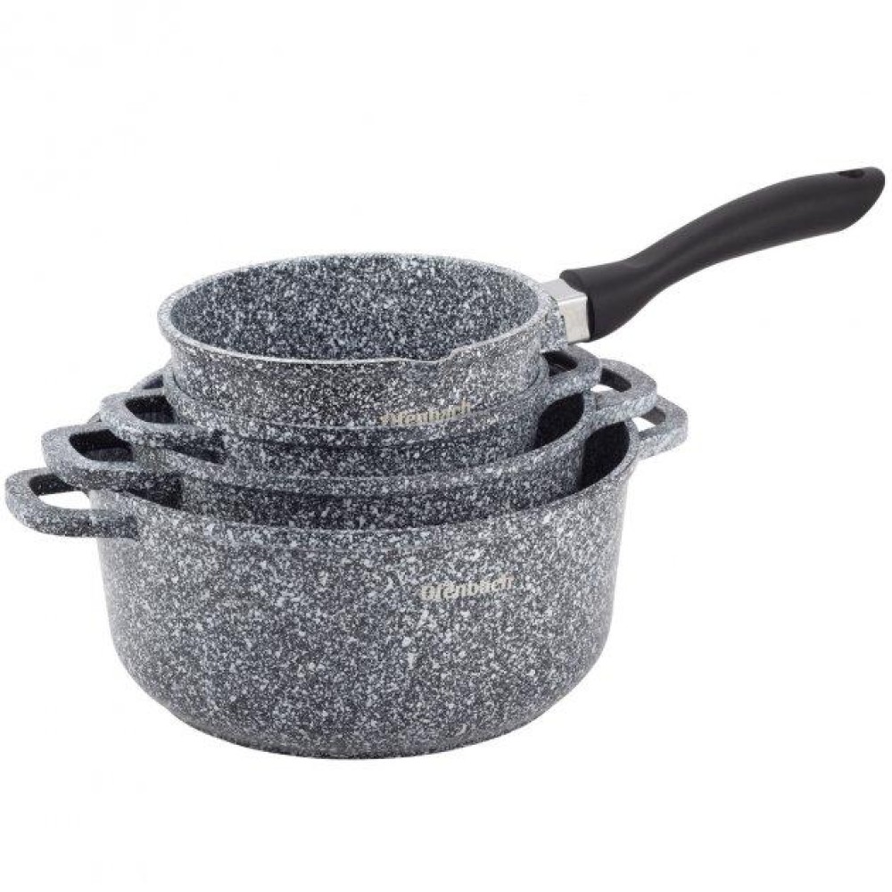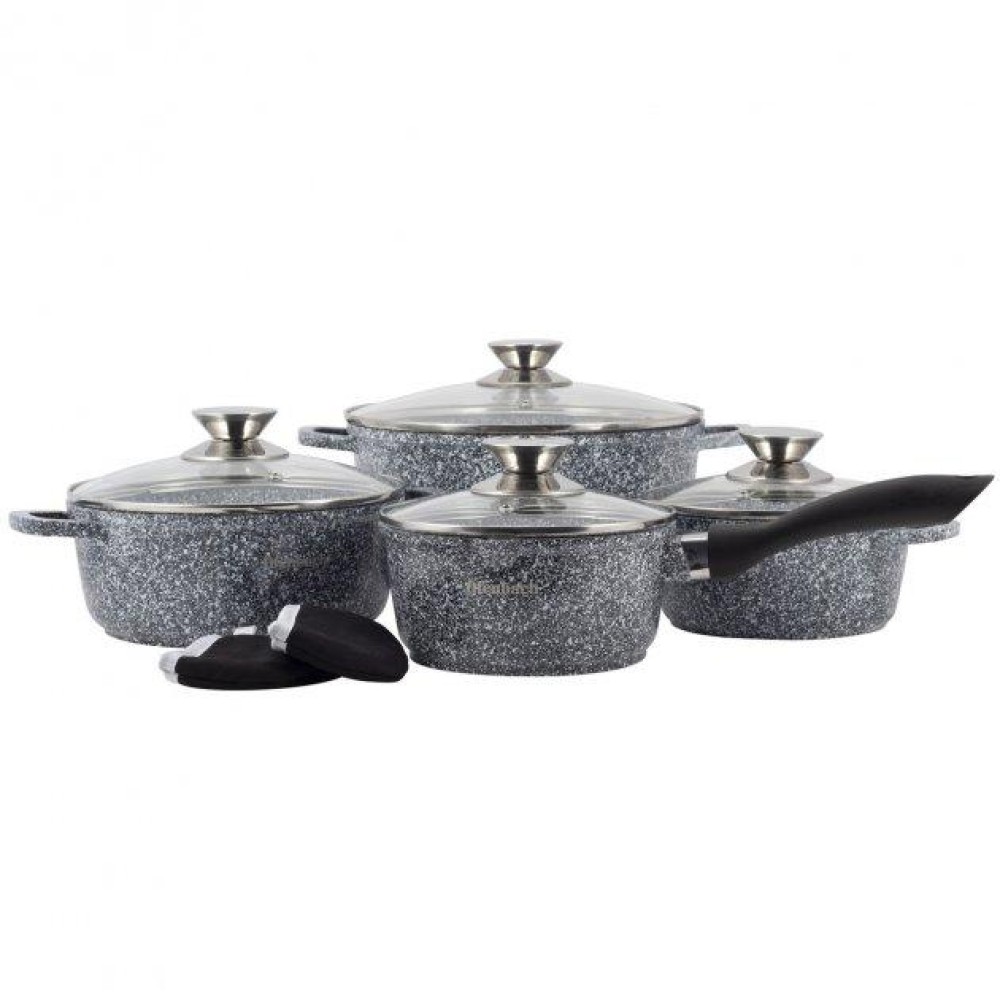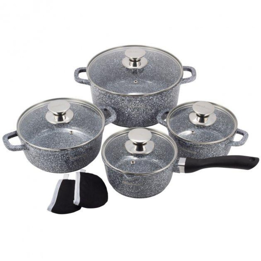 Набір посуду мармур Ofenbach 9 предметів з прихватками (ківш 16см, кастр.16см,20см,24см) KM-100505