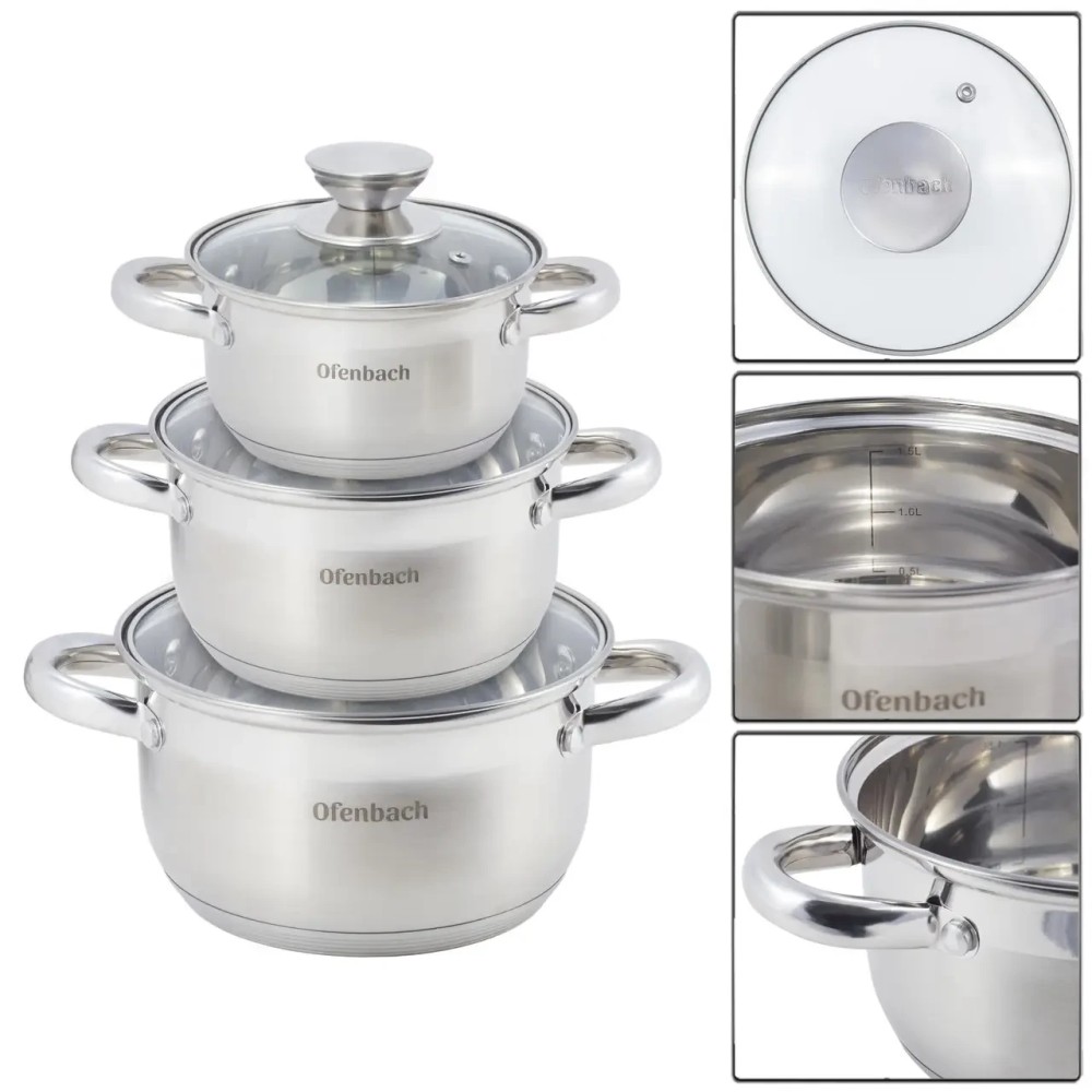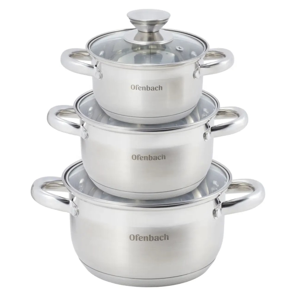 Набір посуду Ofenbach — це завжди смачна та здорова приготування їжі. Виготовлена з якісних матеріалів із застосуванням сучасних технологій, посуд відрізняється високою міцністю та довговічністю. Вона порадує вас своєю практичністю та зручністю, а естетичний дизайн підійде до інтер'єру вашої кухні.