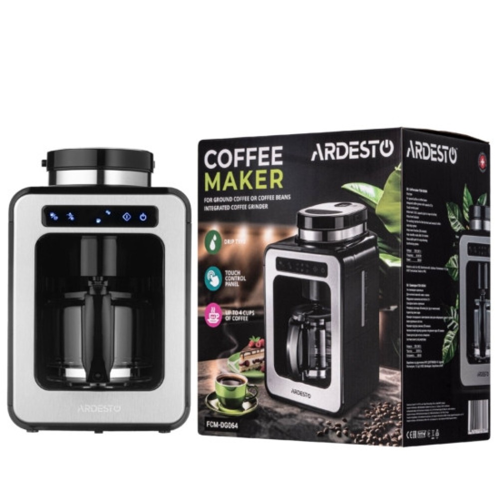Кофеварка с кофемолкой капельная 0.6л, зерно + молотый, дисплей, ARDESTO FCM-DG064