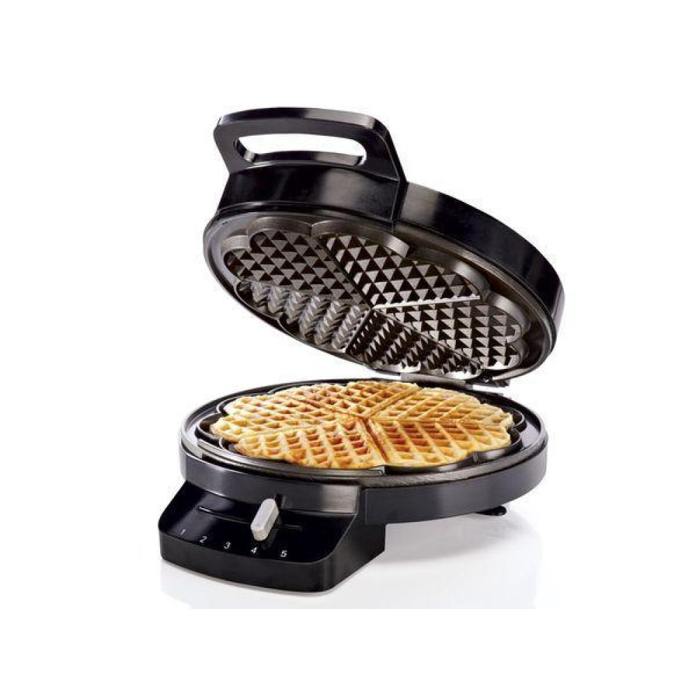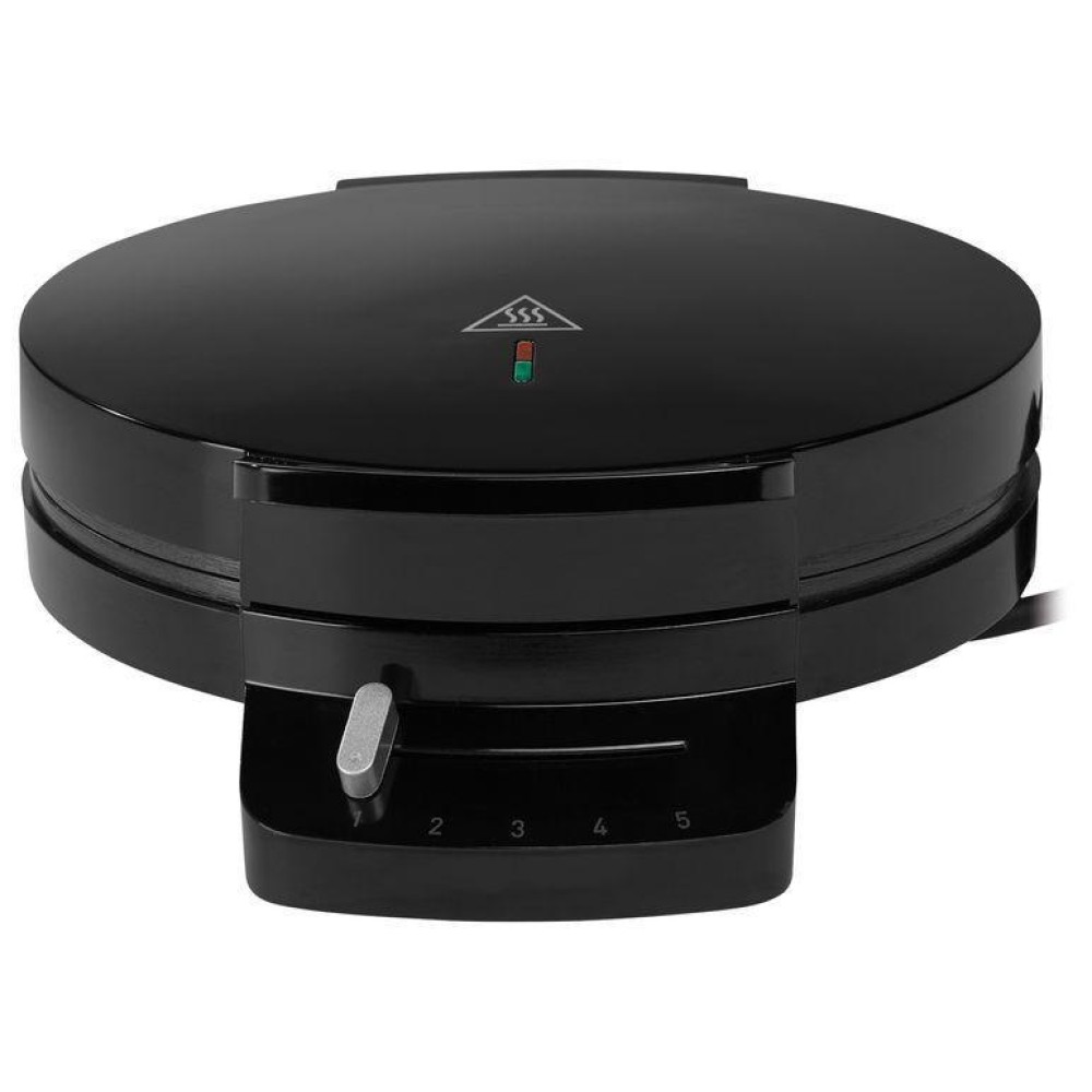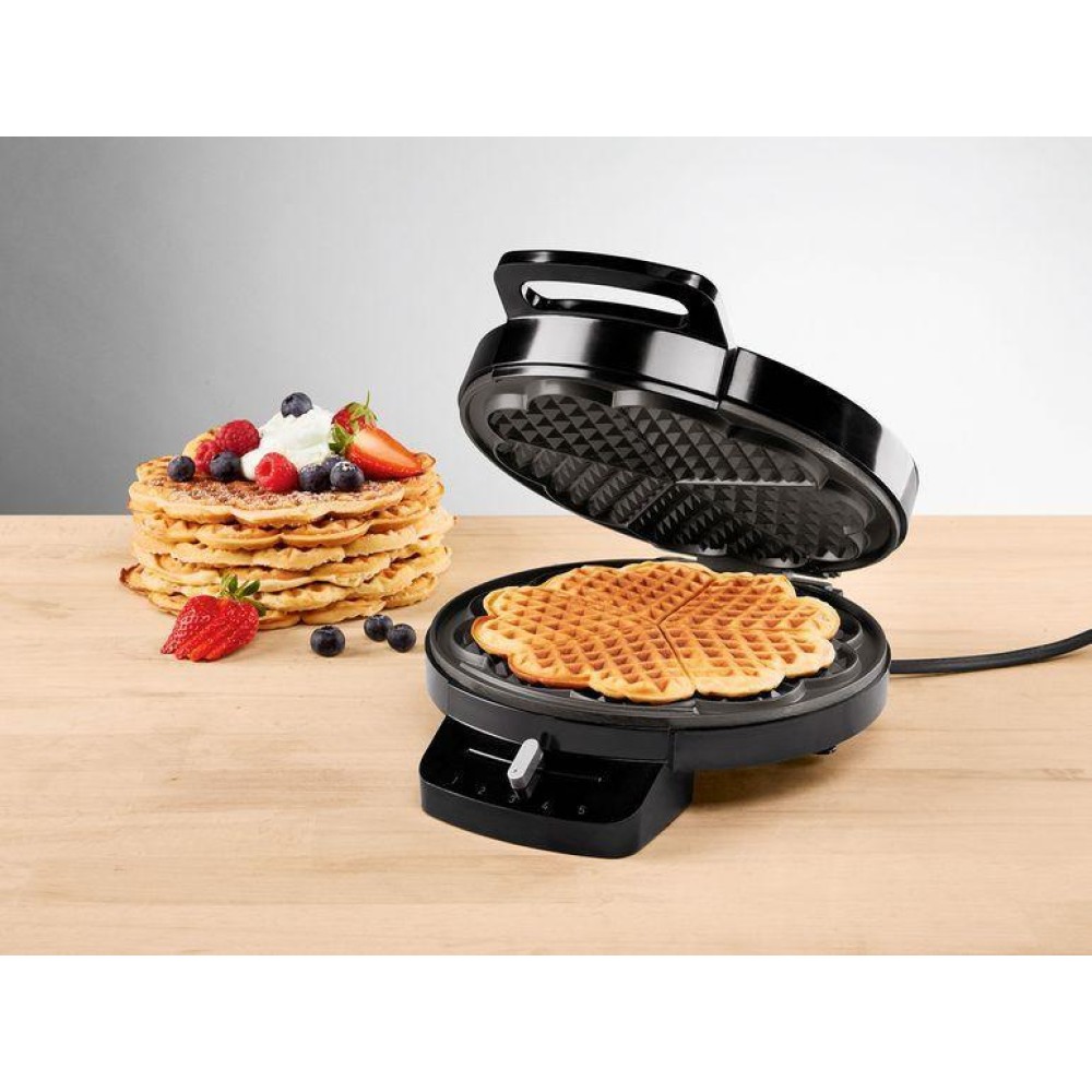 Вафельница оснащена антипригарным покрытием, что позволяет легко извлекать готовые вафли. Большой диаметр формы позволяет готовить вафли с различными начинками. Очистка устройства не займет много времени - достаточно протереть его влажной тряпкой.