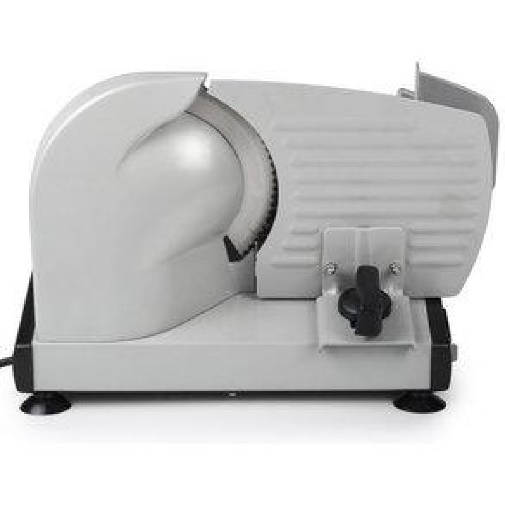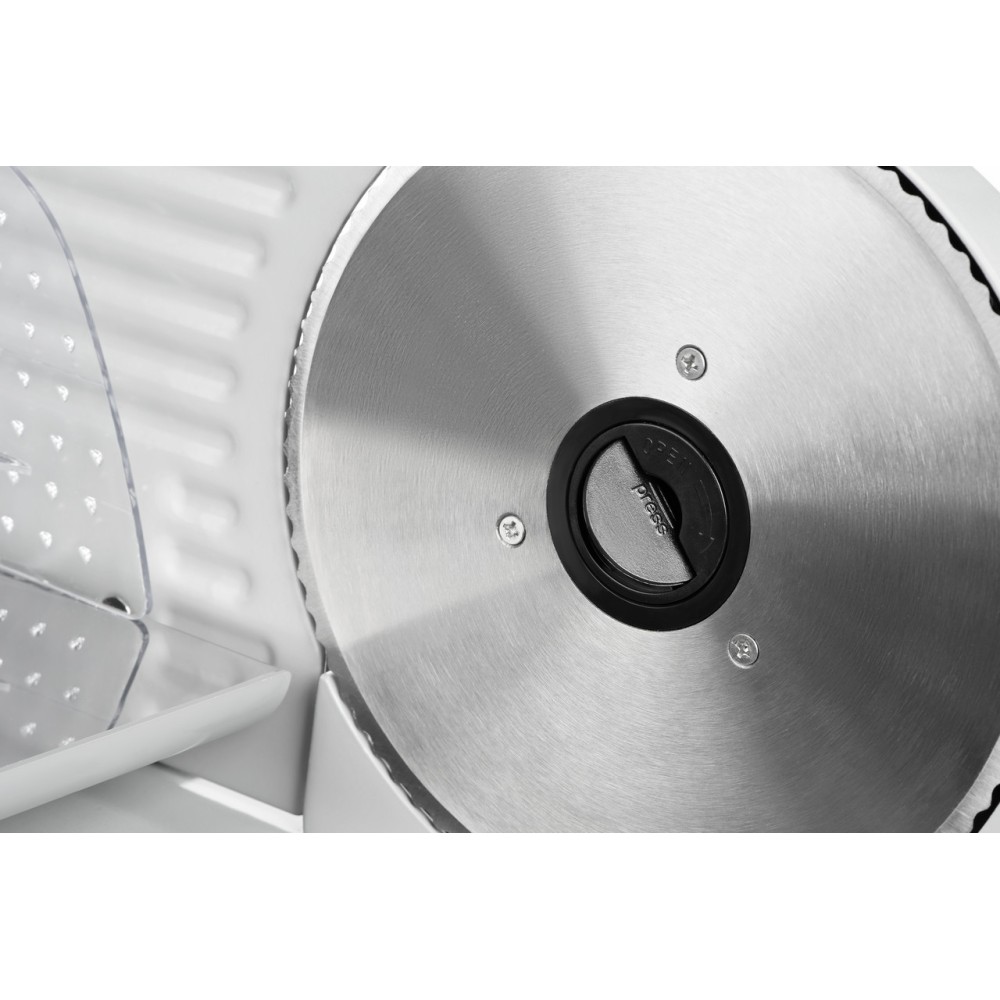 Дисковая ломтерезка слайсер в металлическом корпусе с большим лезвием и регулированием толщины нарезки от 1 до 15 мм. Съемные детали обеспечивают легкое и быстрое очищение.