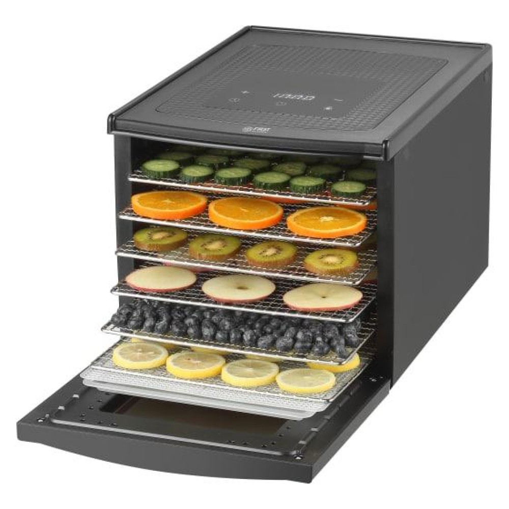 Сушка с конвекцией для овощей, фруктов, грибов и трав. Модель оснащена 6 металлическими сетчатыми поддонами, включая один лоток с мелкой сеткой для мелких ягод.