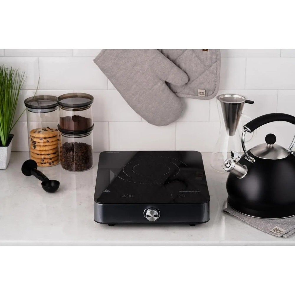 Индукционная электрическая варочная поверхность на одну конфорку с мощностью 1800 Вт.