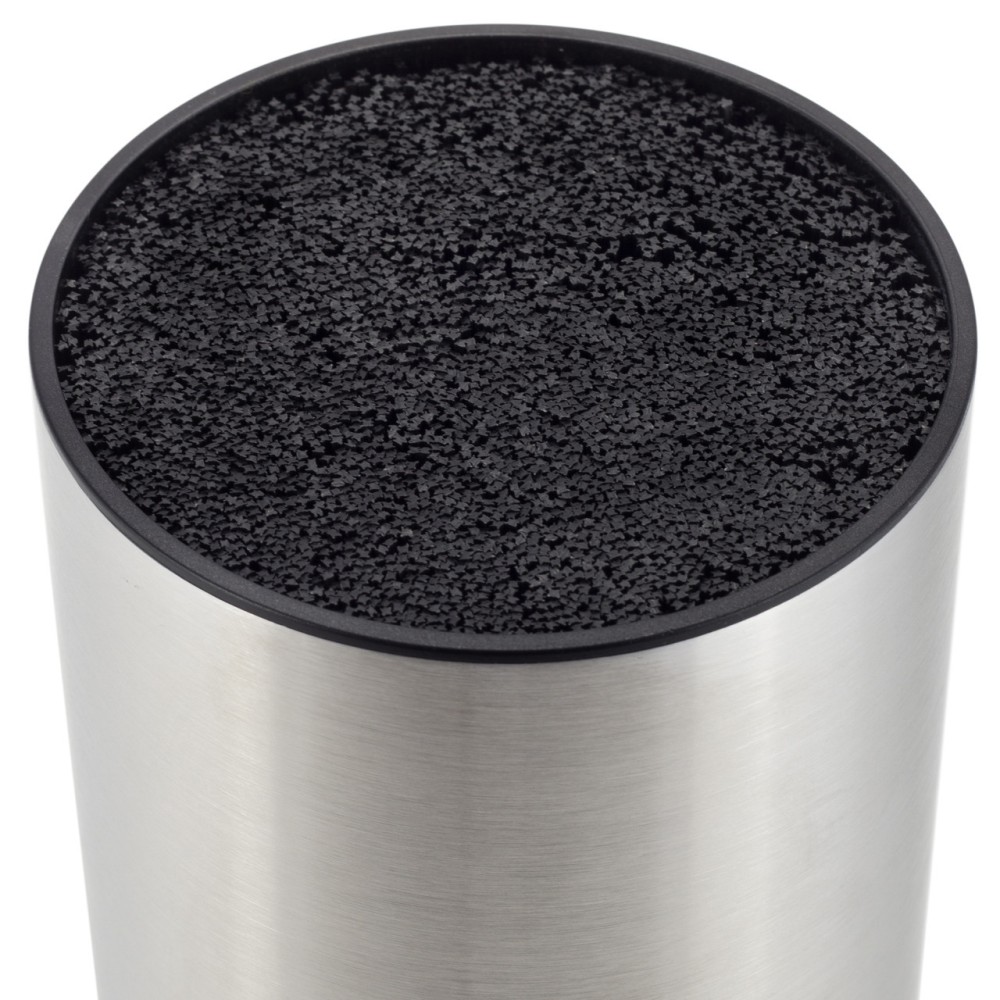 Внутри подставки расположены полипропиленовые разделители, благодаря чему вставить в нее ножи и кухонные приборы можно любым образом.