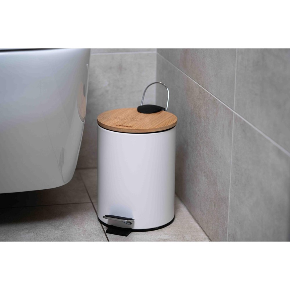 Ведро для мусора Ardesto Minimalism с педалью, 3л, металл, пластик, бамбук, белый ARHB3601WB