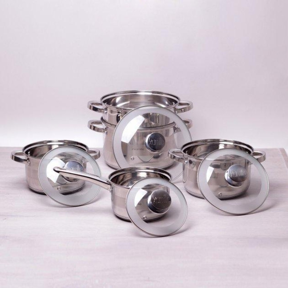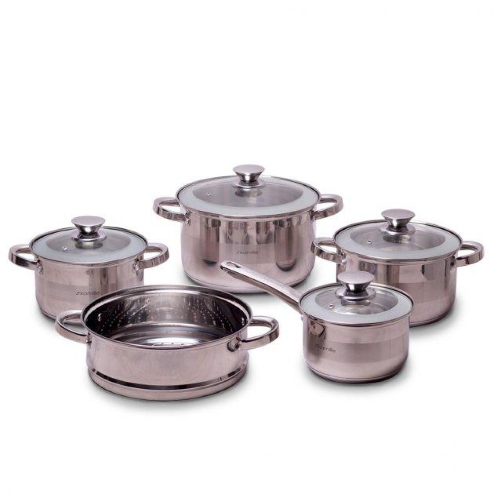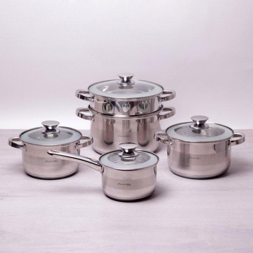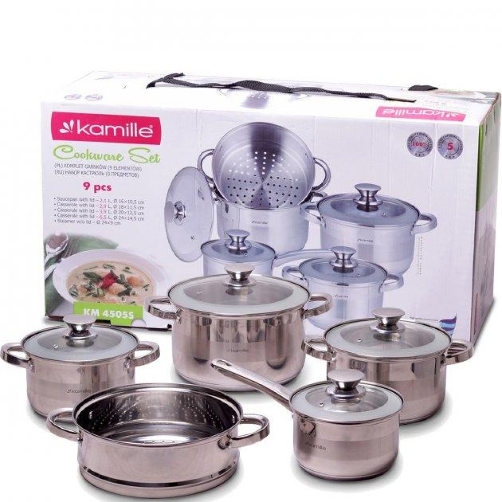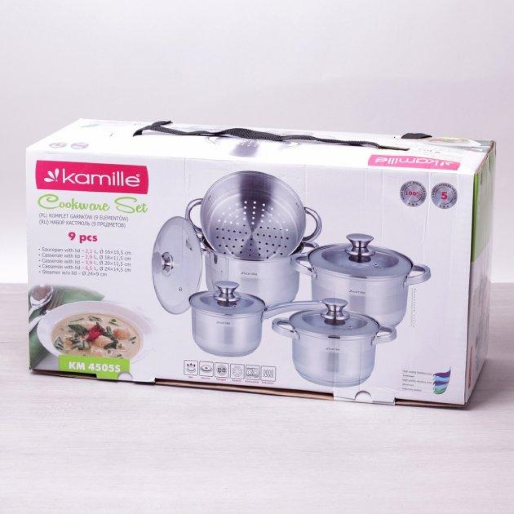 Набор посуды с пароваркой Kamille из нержавеющей стали 9 предметов (2.1л, 2.9л, 3.9л, 6.5л) KM-4505S