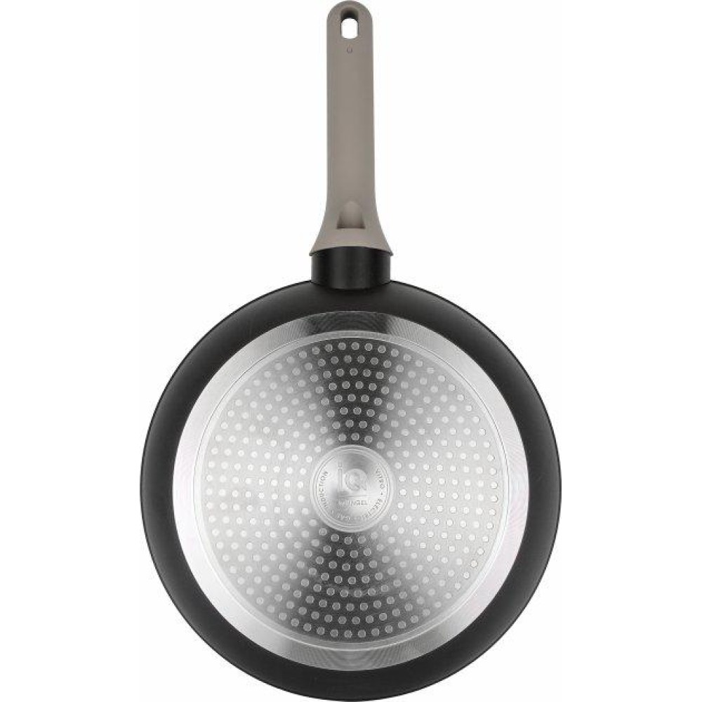 Антидеформационный индукционный диск на дне сковороды позволяет использовать её на индукционных плитах. Кованый алюминий толщиной 3.5 мм обеспечивает равномерное распределение и удержание тепла для быстрой готовки.