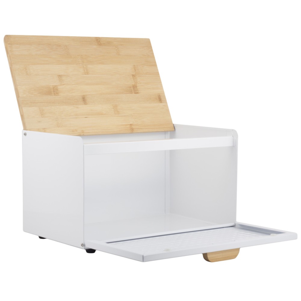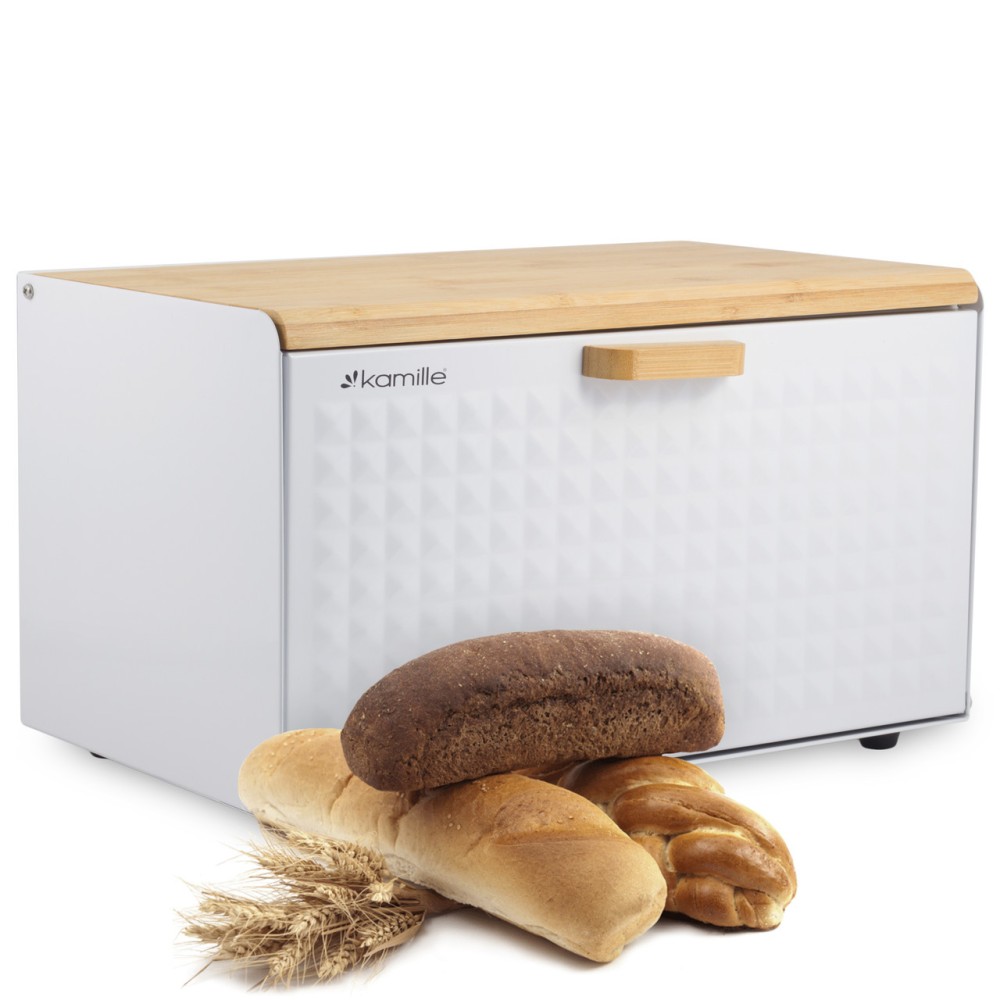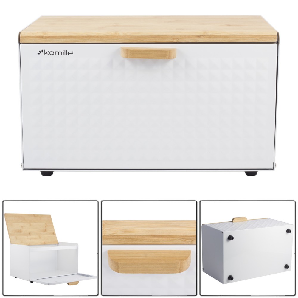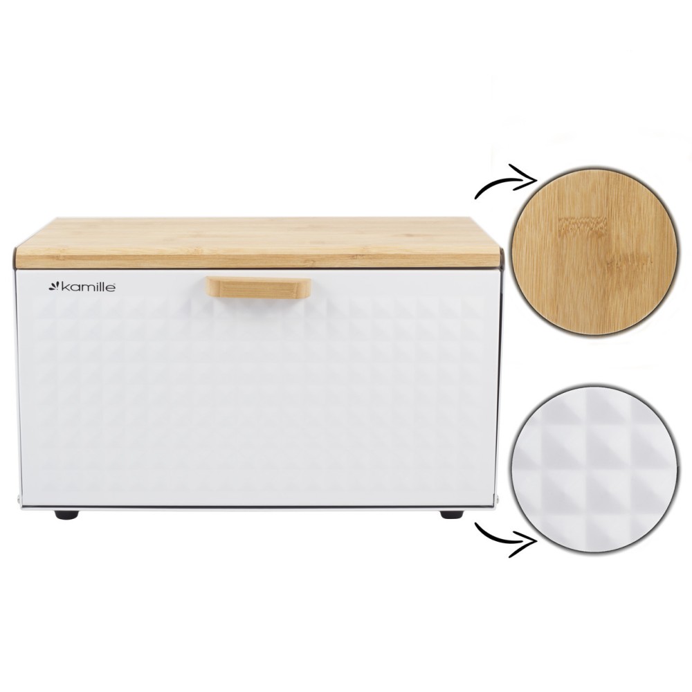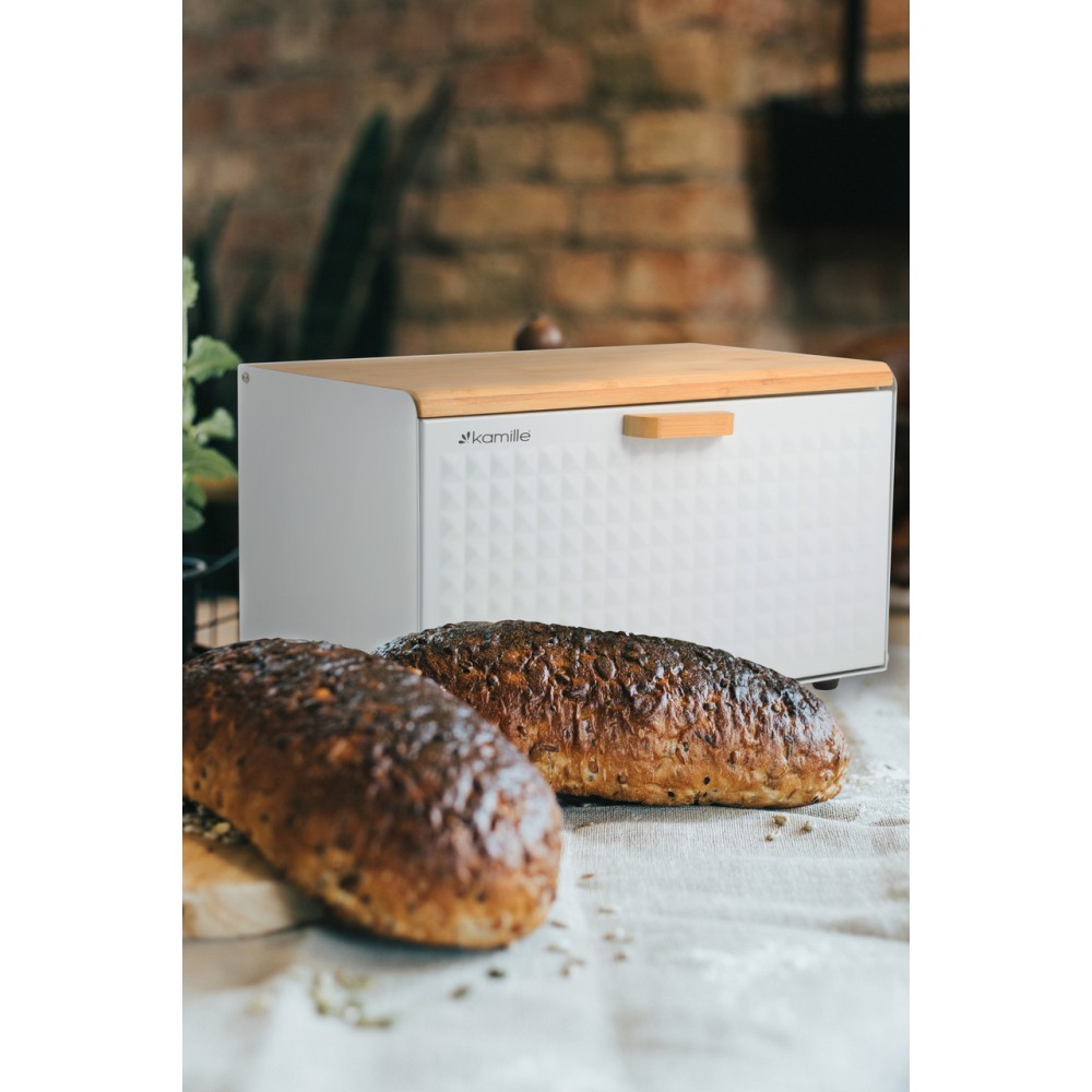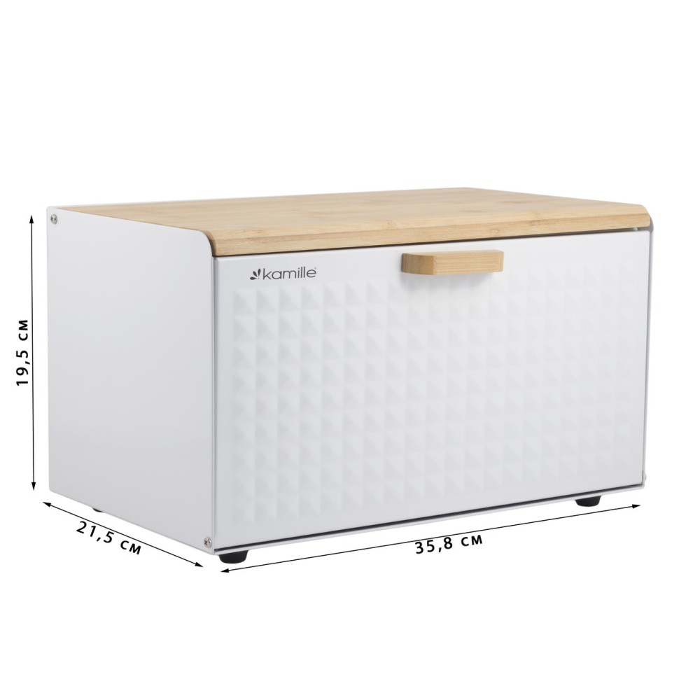 Хлебница Kamille Белая из нержавеющей стали и бамбука KM-1119