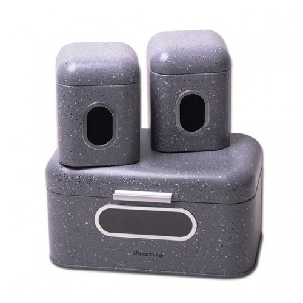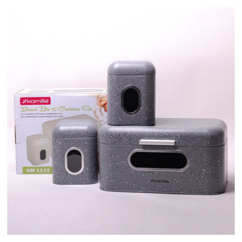 Хлебница Kamille Серый 30см из нержавеющей стали с 2 емкостями для хранения KM-1112