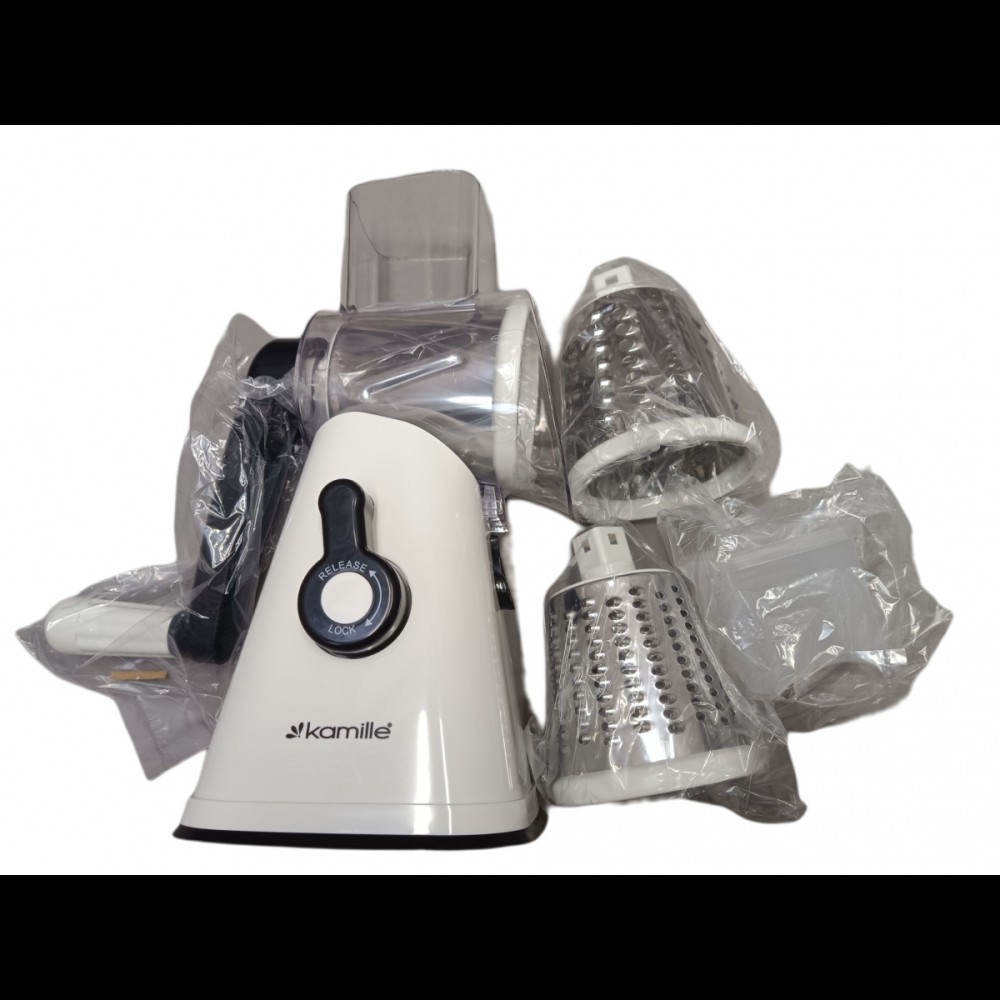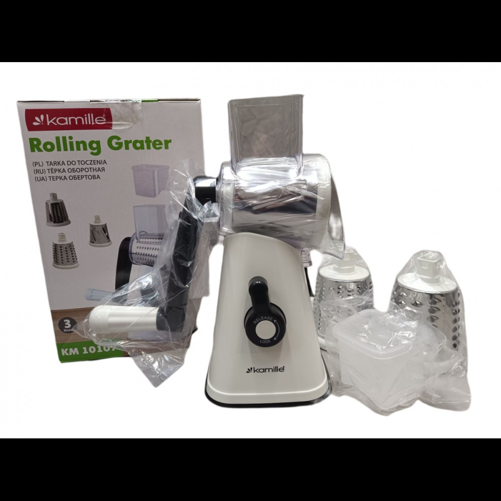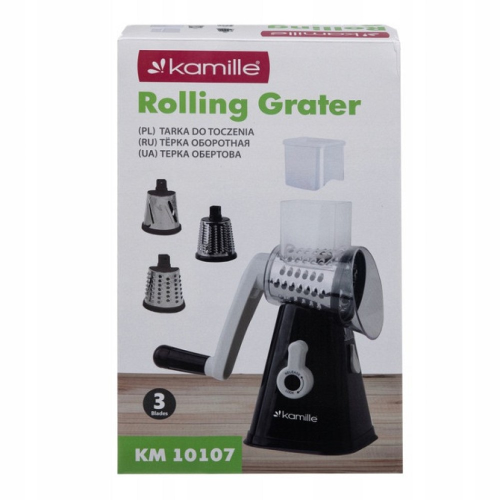 Вращающаяся терка Kamille 3 в 1 предназначена для сыра, орехов, овощей, фруктов, шоколада и других продуктов.
