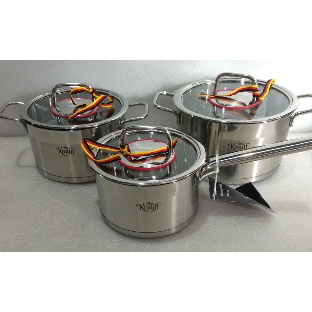 Кастрюли с крышками из набора Krauff позволяют вам не отвлекаться при приготовлении пищи. Все предметы можно использовать одновременно или по отдельности, в зависимости от ваших потребностей.