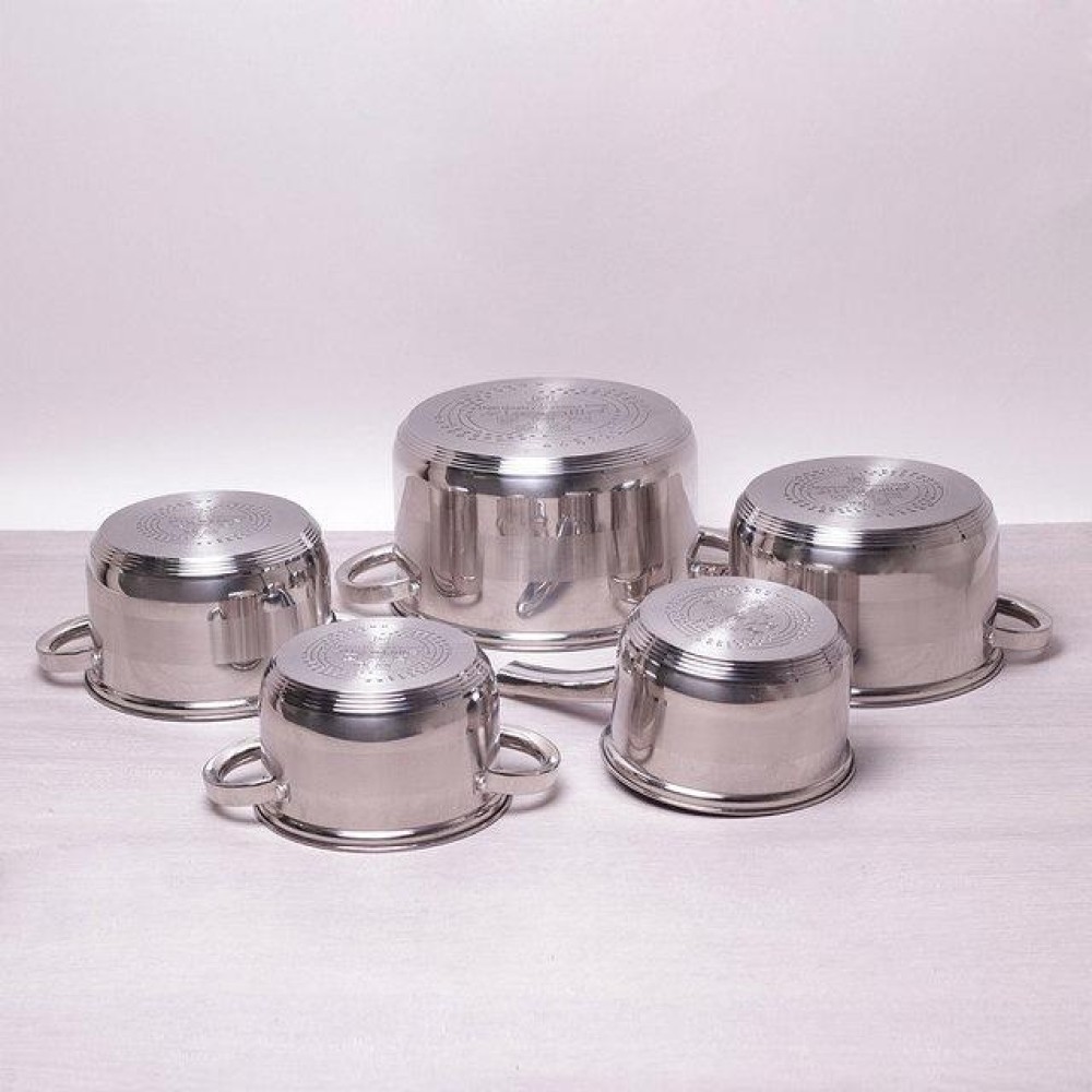 Набор посуды из нержавеющей стали на 10 предметов с толстым дном, предназначенный для индукционных плит.