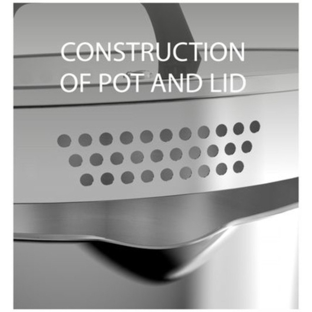 • Конструкция кастрюли и крышки с отверстиями для слива жидкости