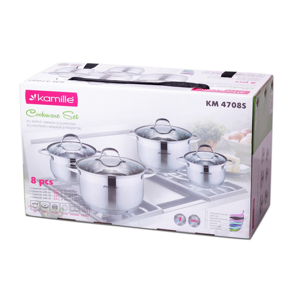 Набор тяжелой посуды (стенка 0.7мм)Kamille KM-4708S 8 предметов