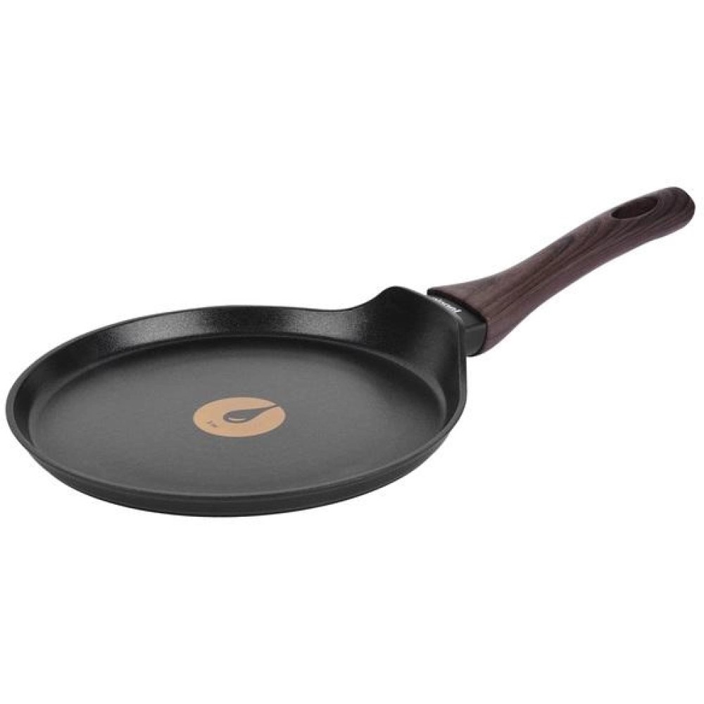 Удобство использования данной сковороды достигается благодаря эргономичной ручке из бакелита. Дополнительное покрытие soft-touch защищает руки от ожогов и позволяет не ускользать даже из влажных ладоней.