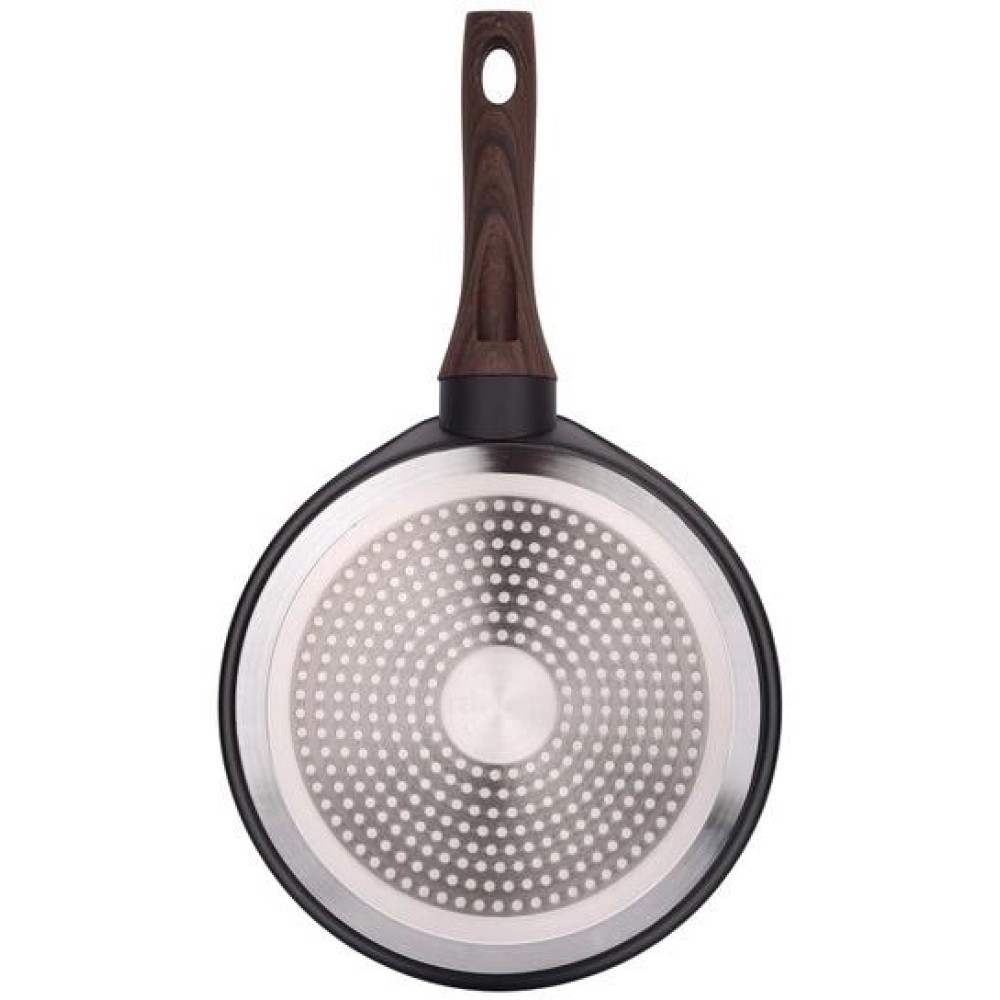 Специальный стальной индукционный диск в донной части сковороды позволяет использовать его на всех видах плит, включая индукционные, инфракрасные и стеклокерамические.