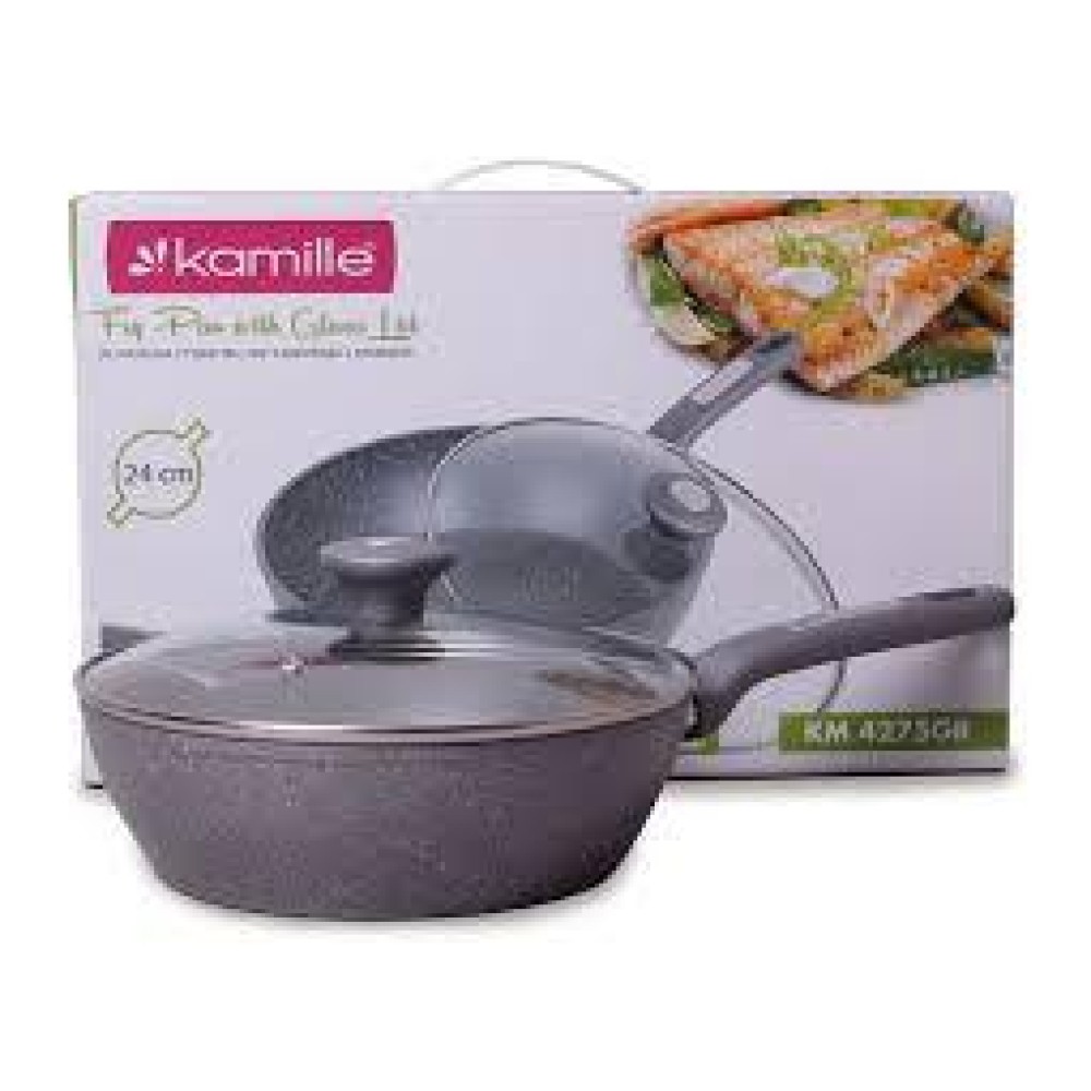 Сотейник Kamille 24см из литого алюминия с гранитным покрытием и крышкой для индукции и газа KM-4275GR