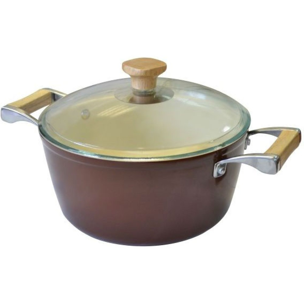 - Материал: алюминий, жаропрочное стекло, дерево