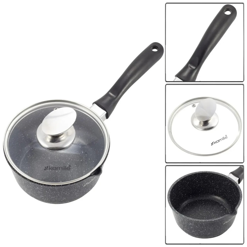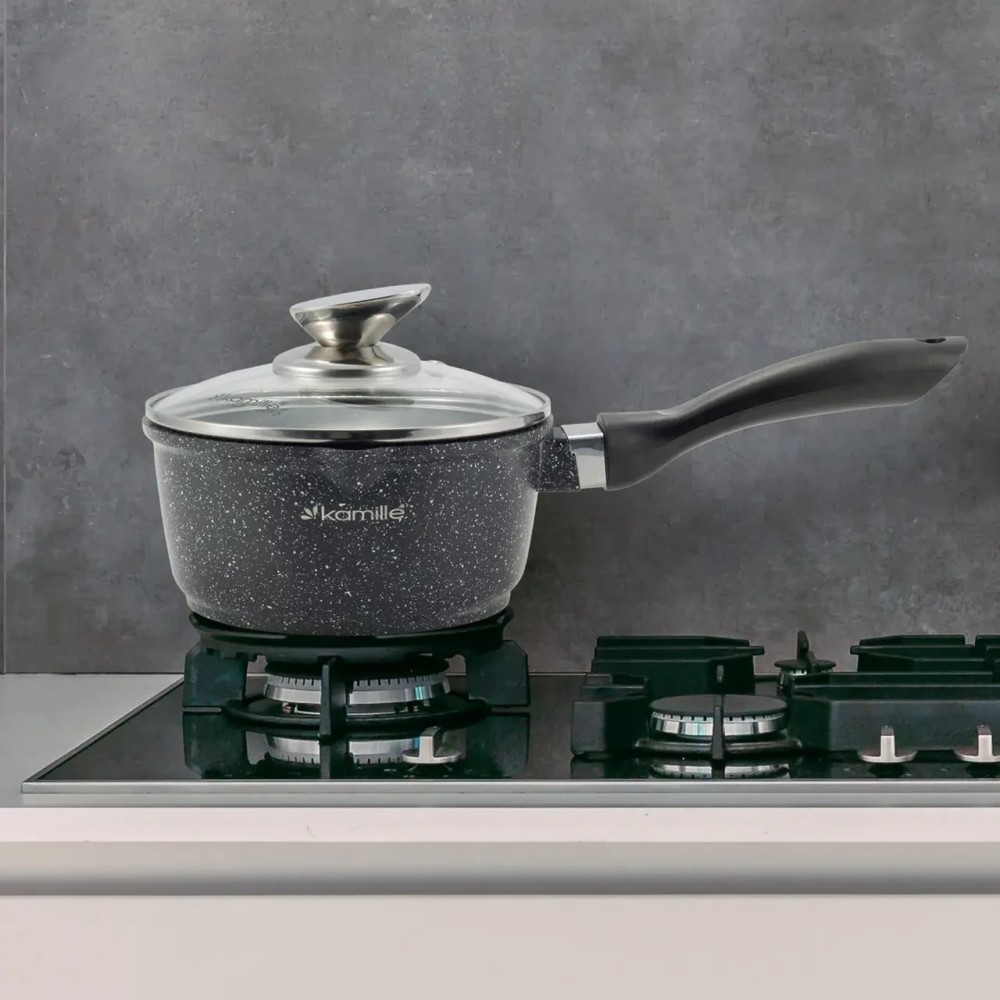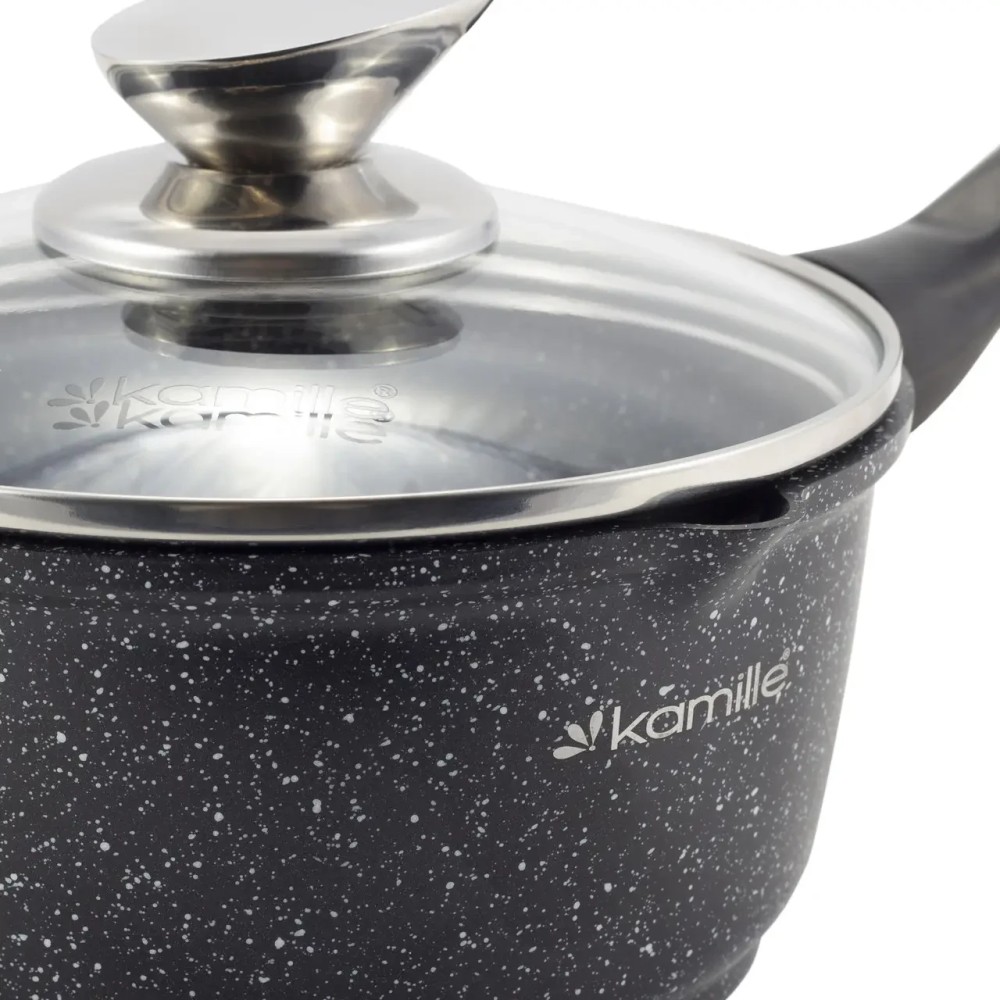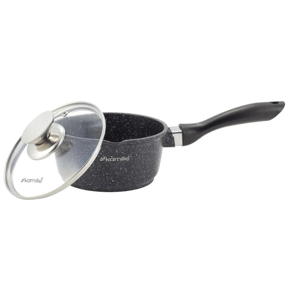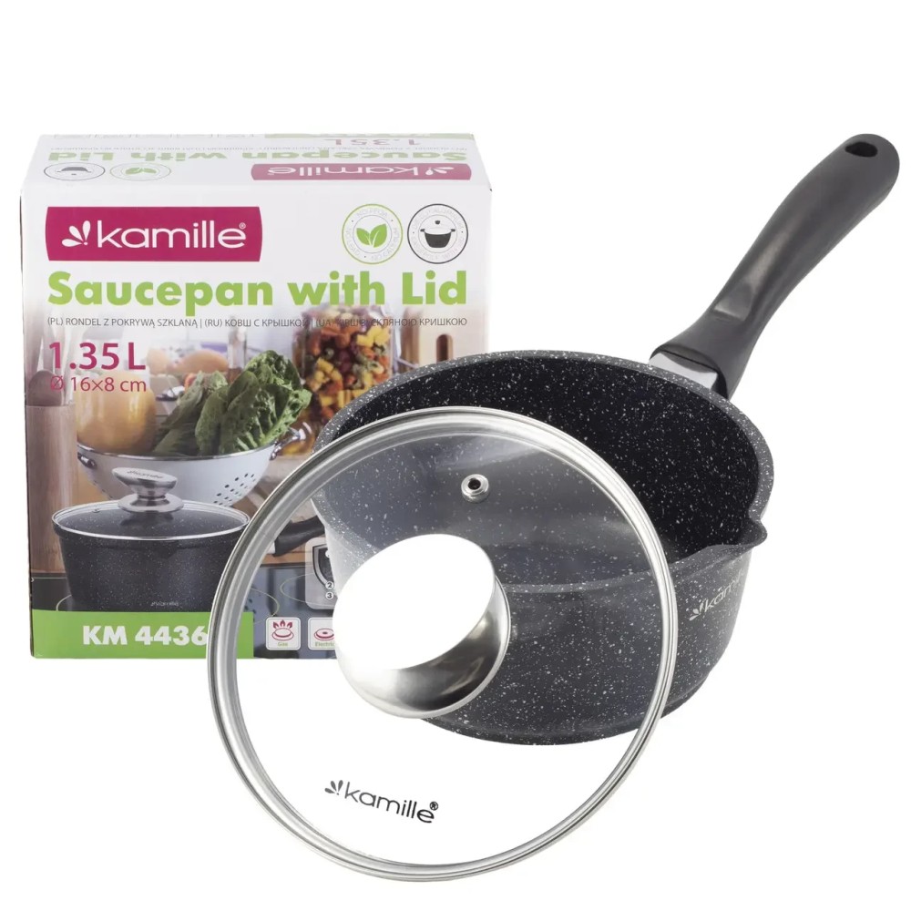 Ковш Kamille с крышкой 16 см 1,35 л. из литого алюминия с мраморным покрытием KM-4436
