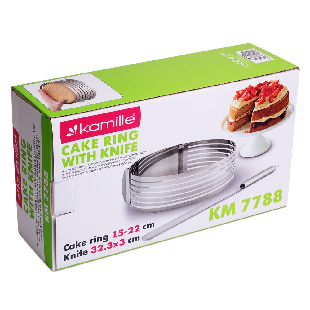 Форма Kamille для нарезки бисквита 15-22см, регулируемая с ножом