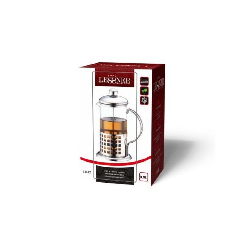 Корпус и ручка заварника френч-пресс Lessner 11611 изготовлены из высококачественной нержавеющей стали, а колба — из термостойкого стекла.