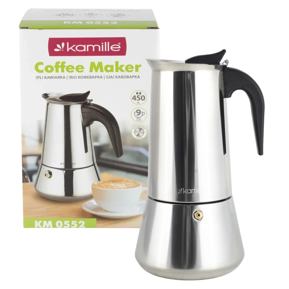 Кофеварка гейзерная Kamille 450мл из нержавеющей стали KM-0552