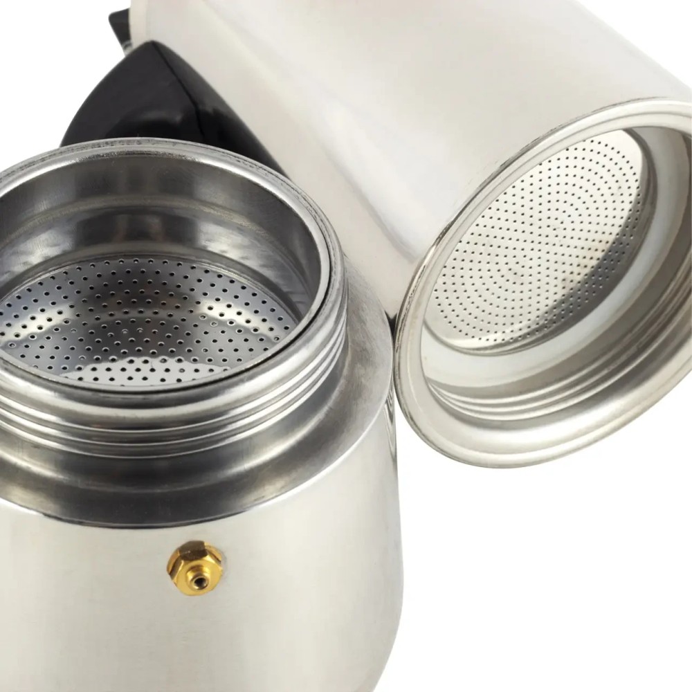 Наполните нижнюю емкость водой, поместите сверху емкость-фильтр и наполните ее молотым кофе, не утрамбовывая его. Оденьте верхнюю секцию и прокрутите для закрытия. Убедитесь, что фильтр и силиконовое кольцо на месте и плотно прилегают друг к другу. Обратите внимание, что очень важно обеспечить таким образом полную герметичность. При приготовлении кофе уровень нагревания должен быть низким! Когда кофе перестанет поступать в верхнюю емкость, кофеварку необходимо убрать с нагревающей поверхности. Ароматный горячий кофе готов.