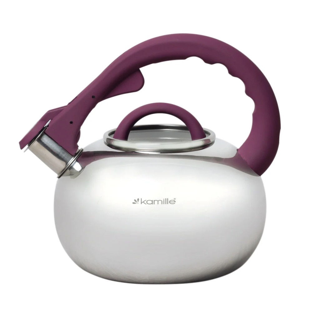 Чайник Kamille Фиолетовый 2.8л из нержавеющей стали со свистком и стеклянной крышкой KM-0687A