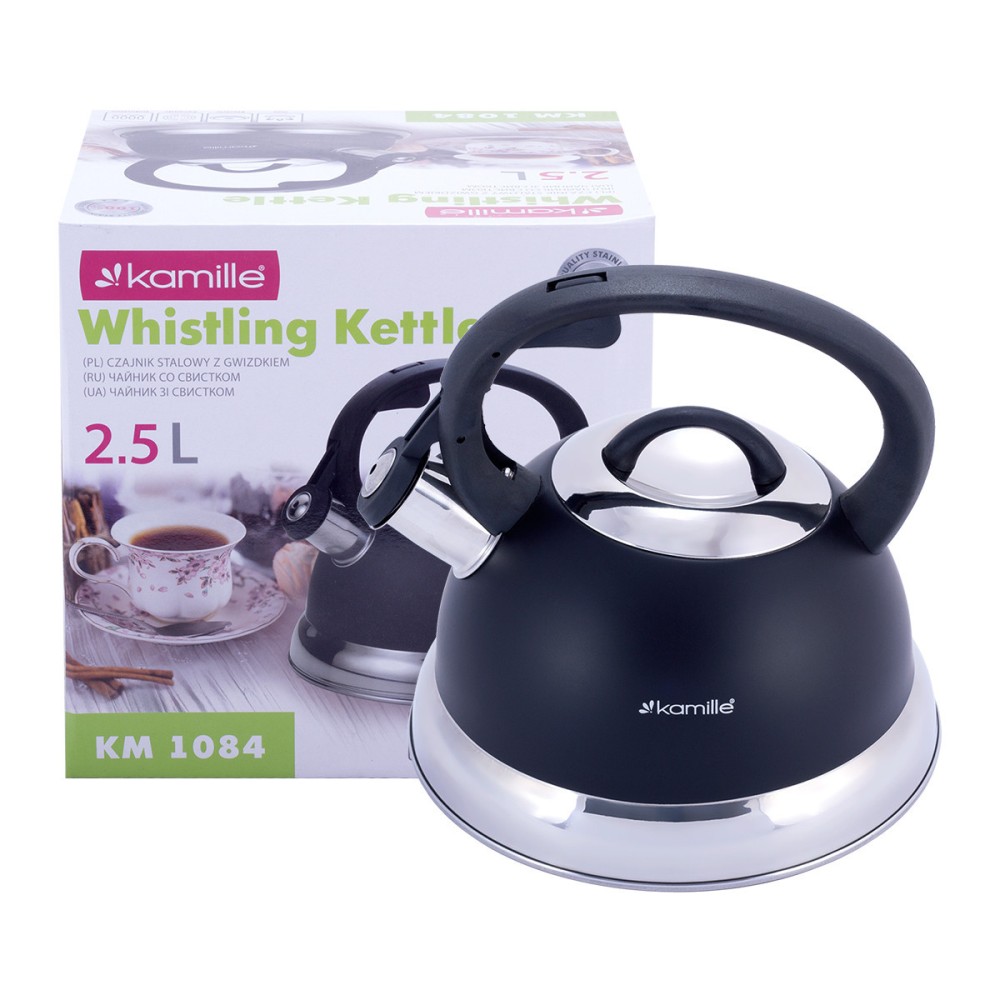 Чайник Kamille 2,5л из нержавеющей стали со свистком и бакелитовой ручкой для индукции и газа KM-1084