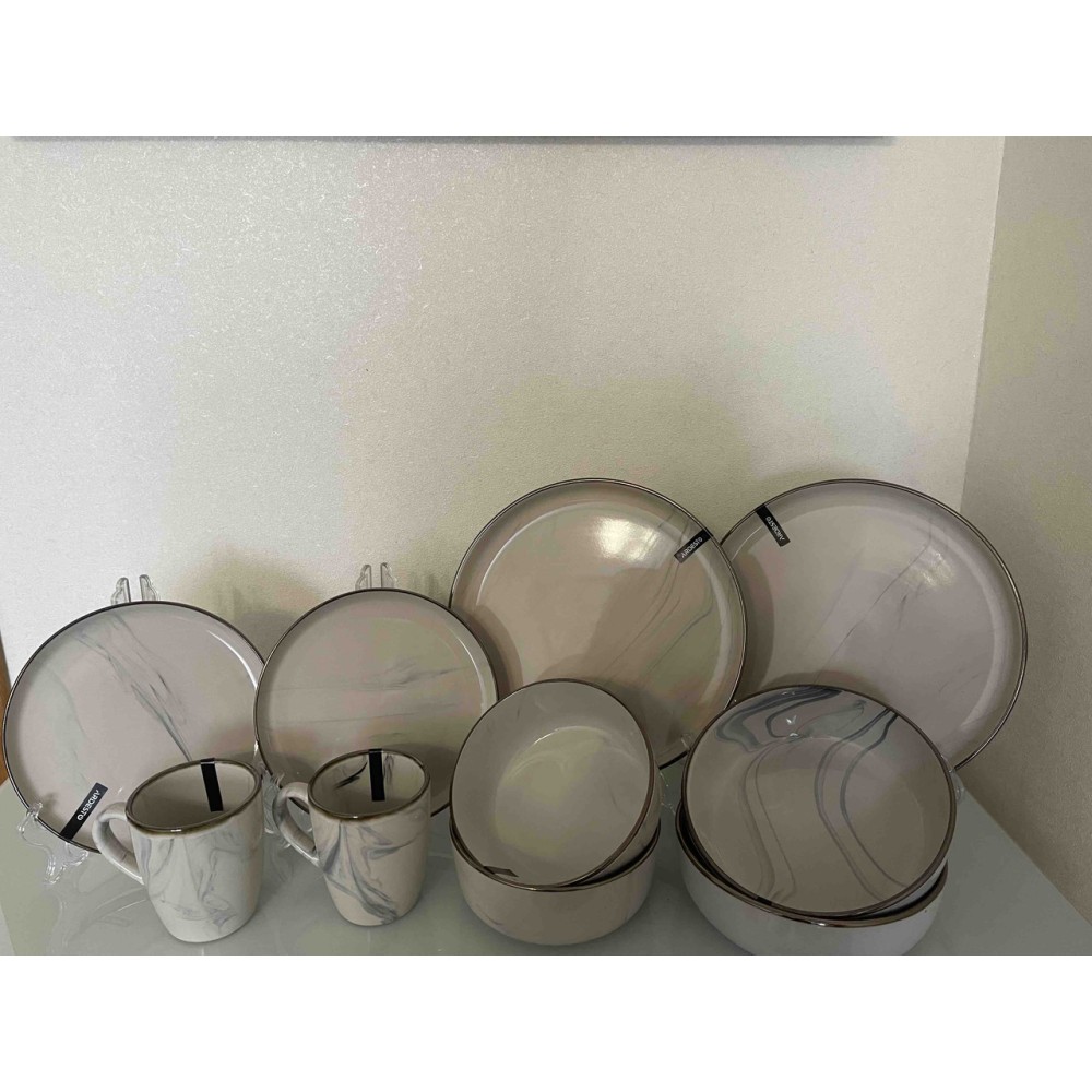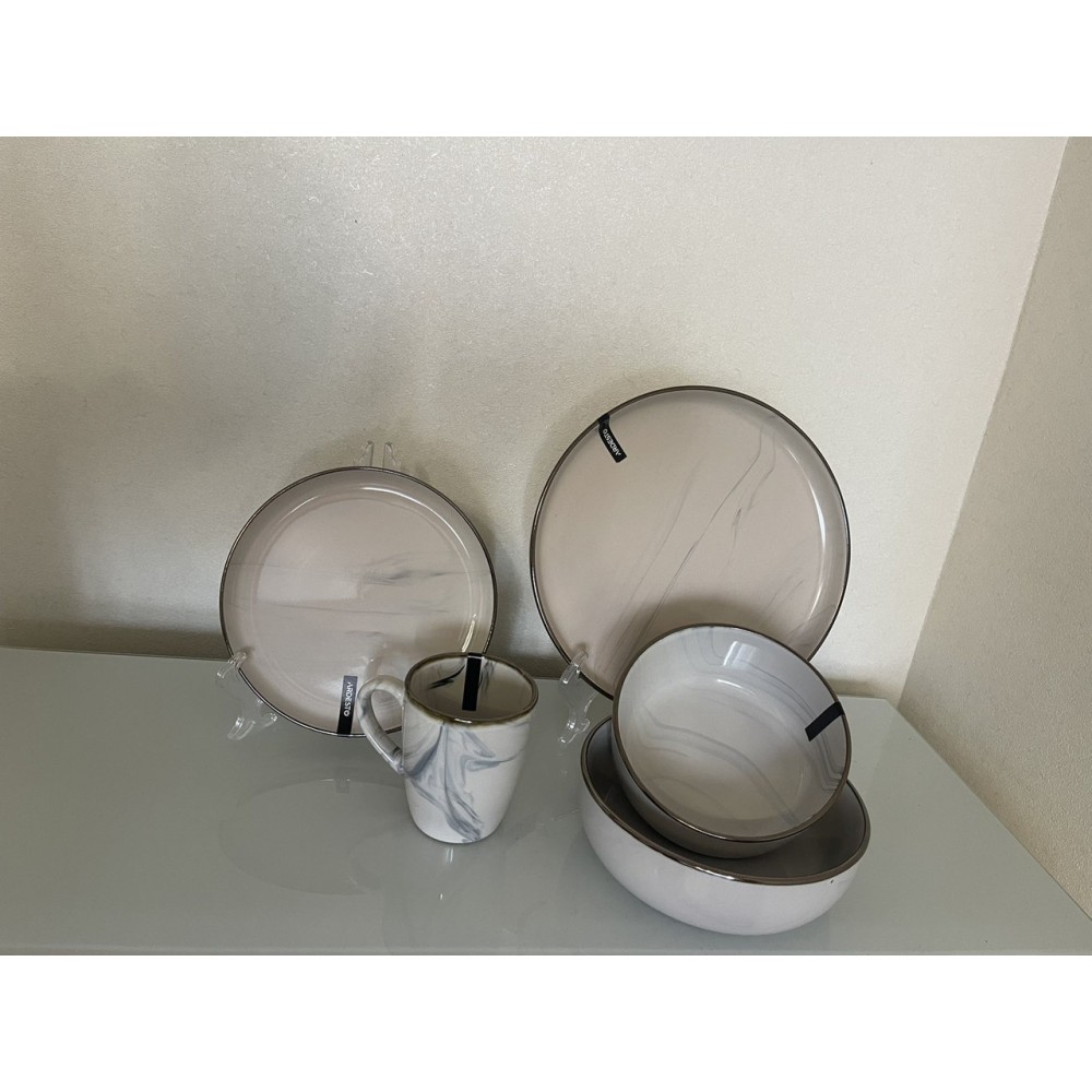 Набор полностью изготовлен из сверхпрочной каменной керамики, которая является 100% экологически чистым материалом. Квадратные и круглые тарелки стильно сочетаются, имеют гладкую поверхность и не впитывают посторонних запахов и цветов.