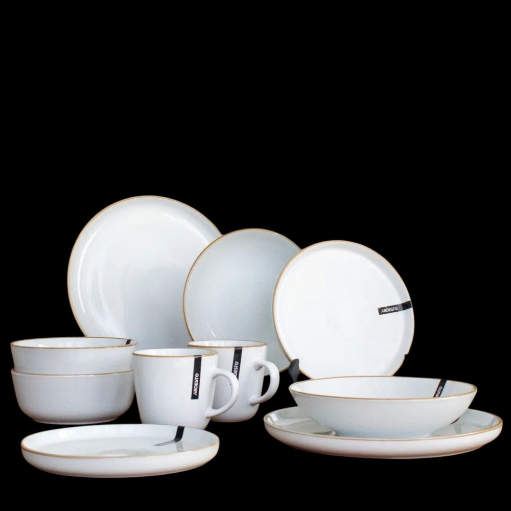Набор полностью изготовлен из сверхпрочной каменной керамики, которая является 100% экологически чистым материалом. Квадратные и круглые тарелки стильно сочетаются, имеют гладкую поверхность и не впитывают посторонних запахов и цветов.