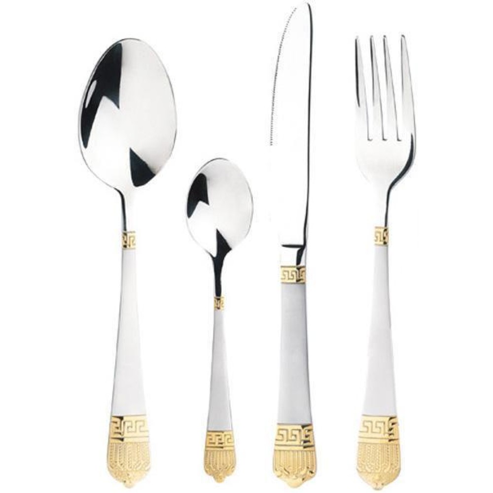 Изготовлены из высококачественной нержавеющей стали. Зеркальная полировка рабочей части обеспечивает гигиеничность и облегчает уход. Ручка с матовой полировкой и золотым орнаментом. Можно мыть в посудомоечной машине.